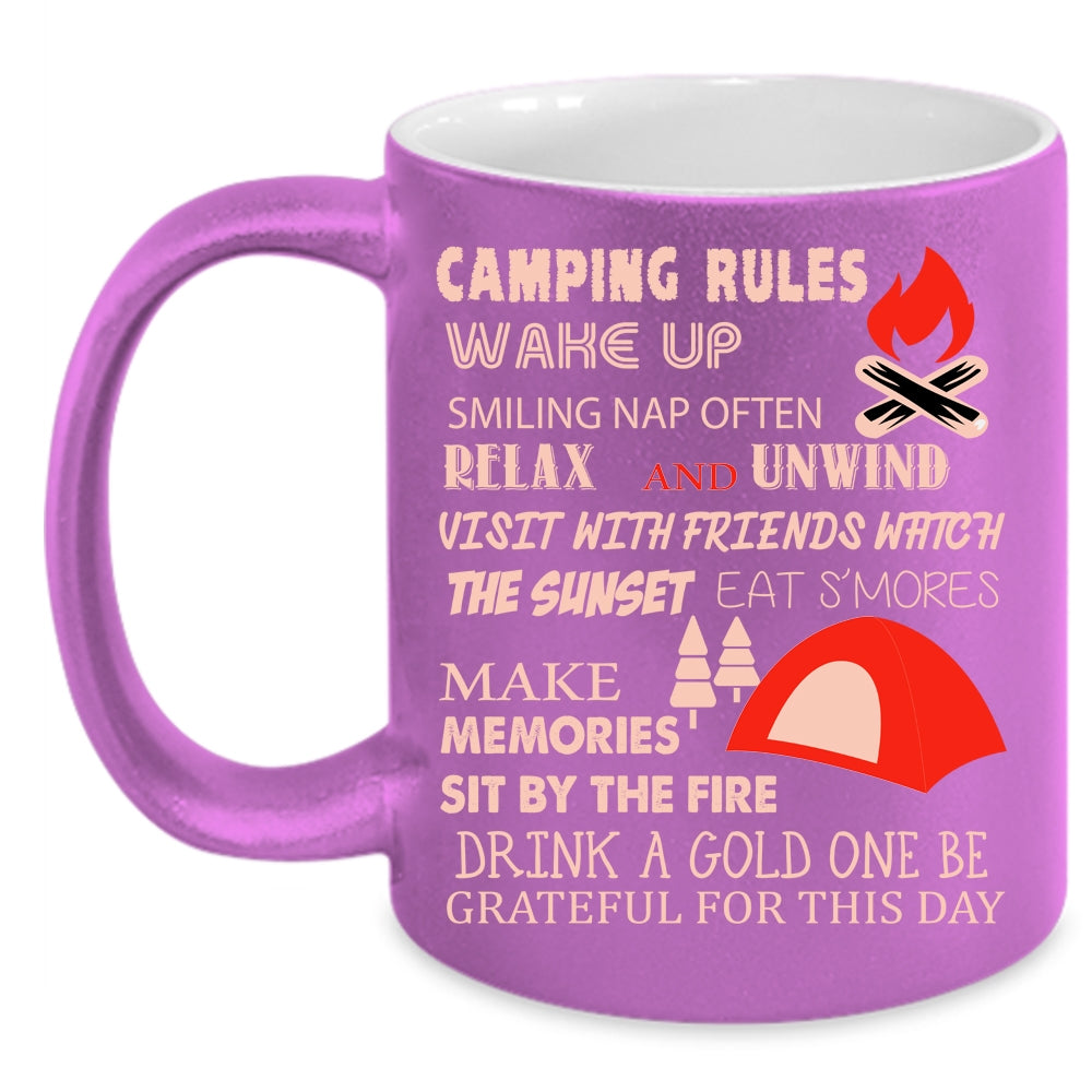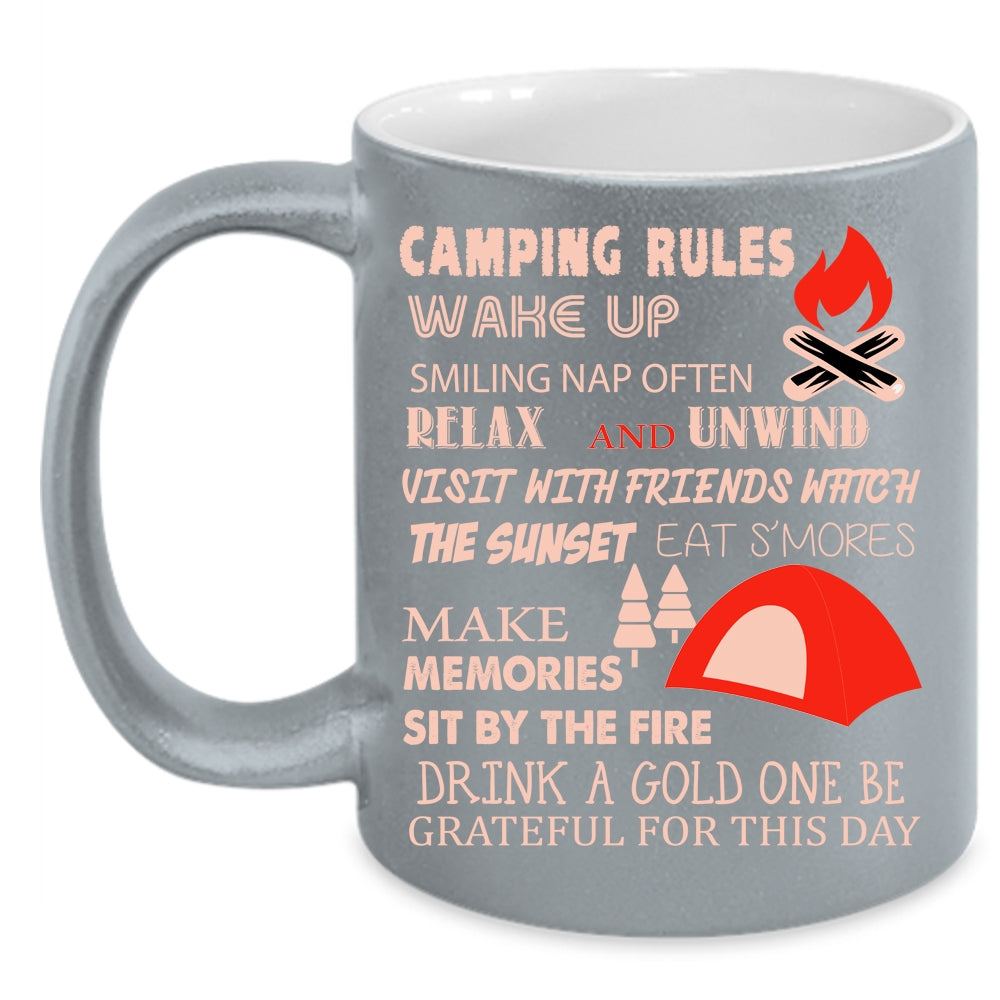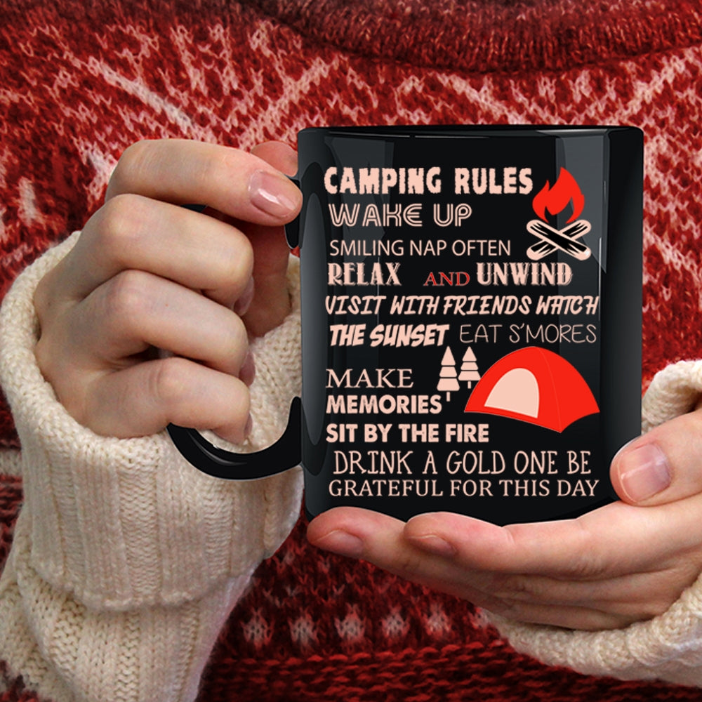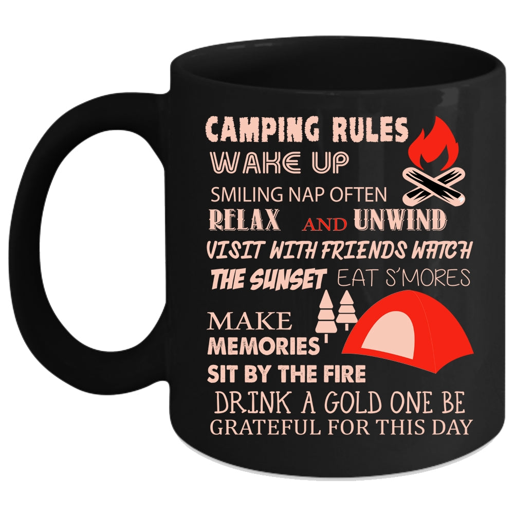 Camping Rule Coffee Mug, Outdoor Activity Coffee Cup