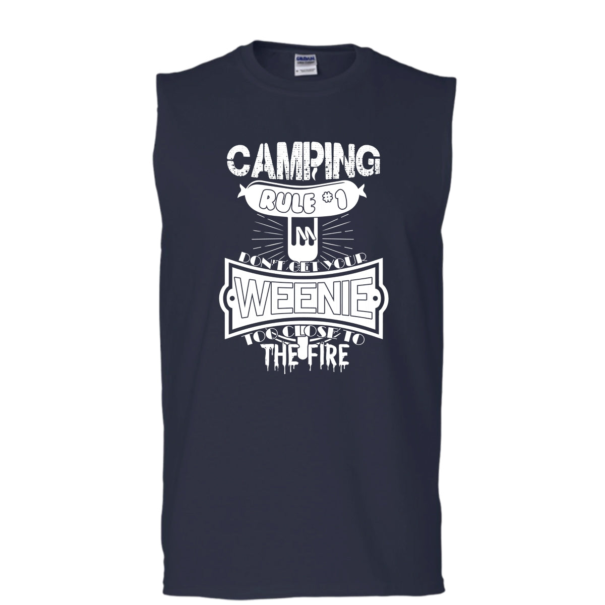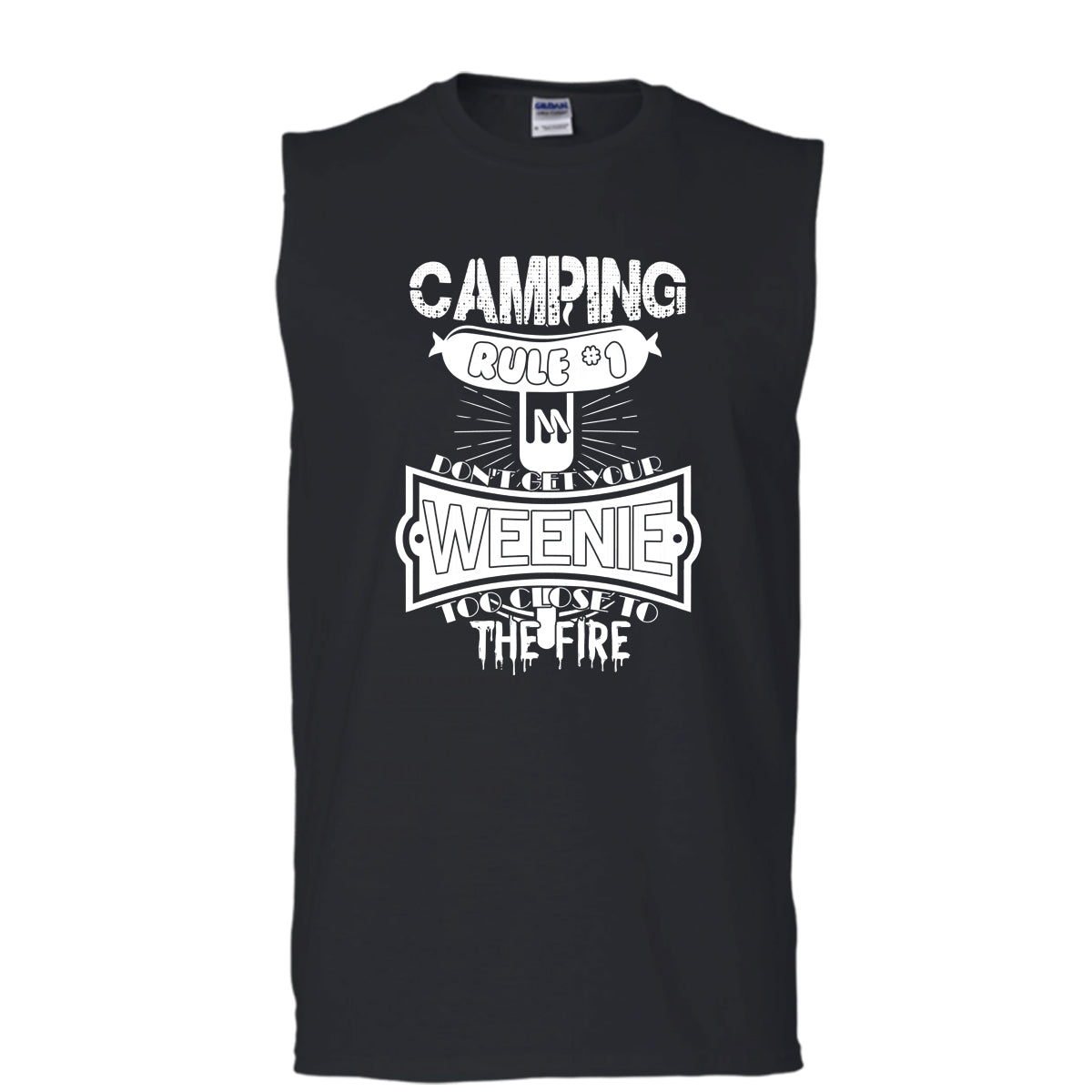 Camping Rule T Shirt, Don't Get Your Weenie Too Close To The Fire T Shirt, Cool T Shirt (Men's Cotton Sleeveless)