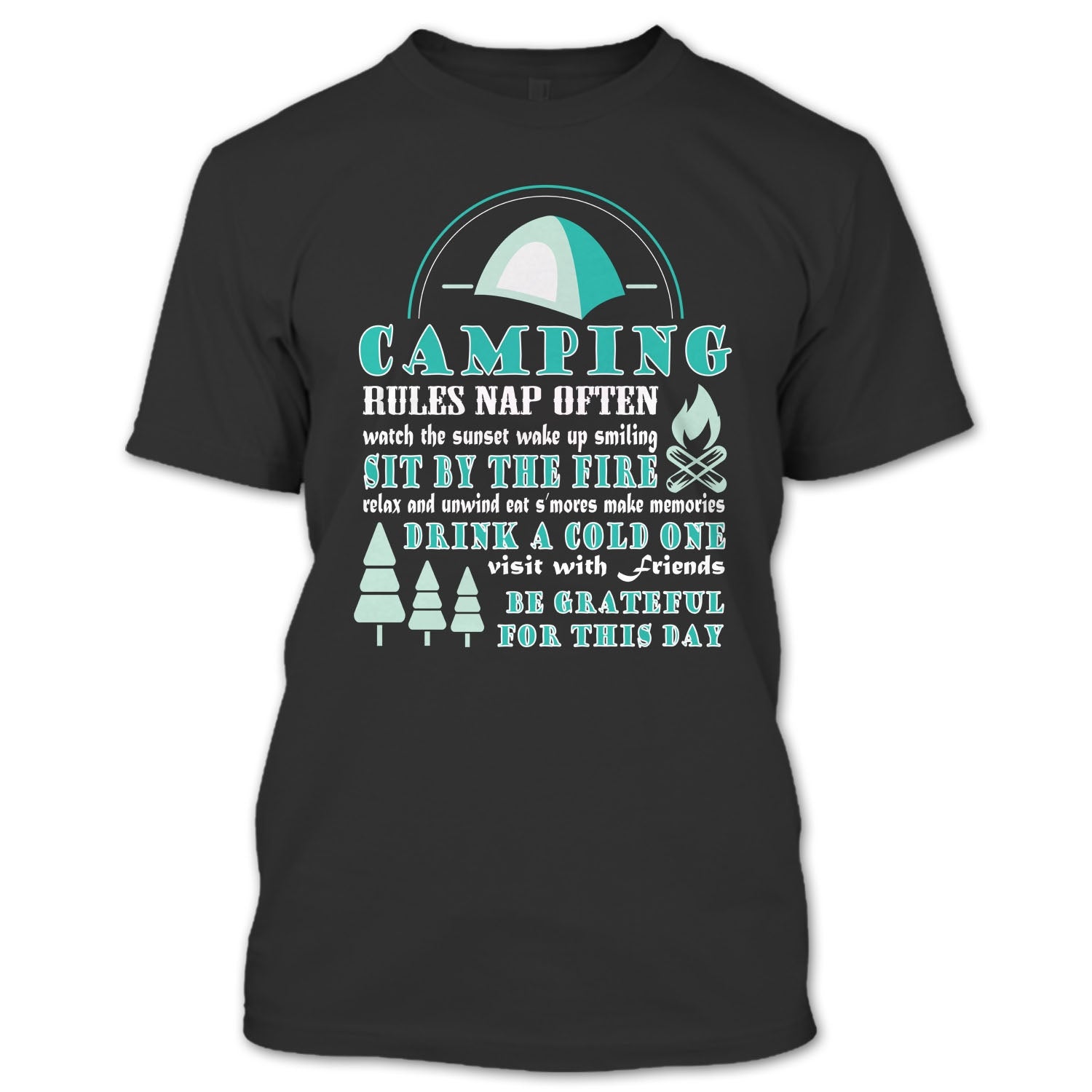 Camping Rule T Shirt, Nap Often Watch The Sunset Wake Up Smiling T Shirt
