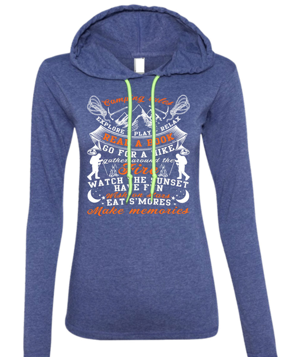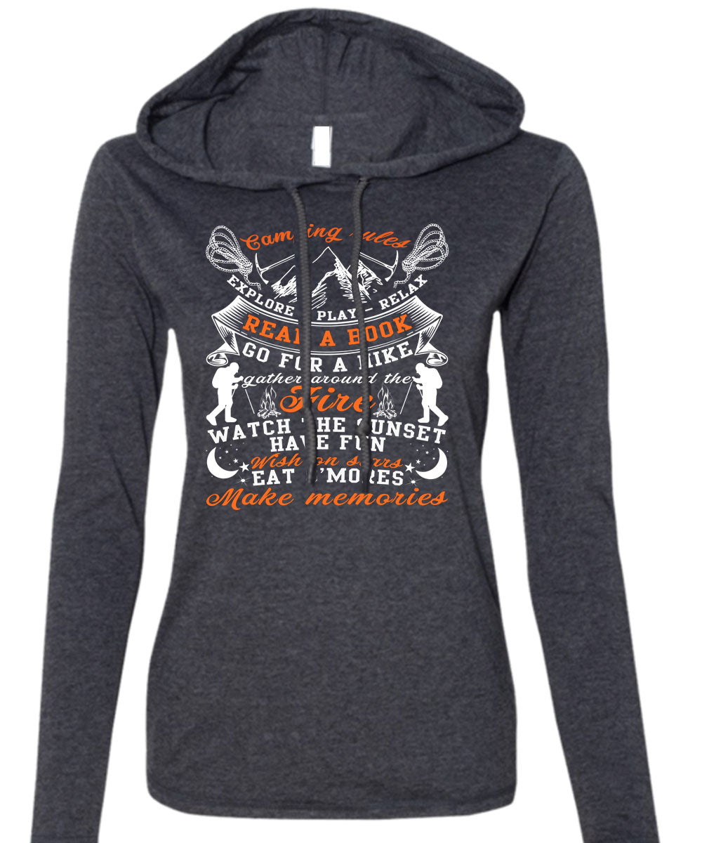 Camping Rules Explore Play Relax T Shirt, Read A Book T Shirt (Anvil Ladies Ringspun Hooded)