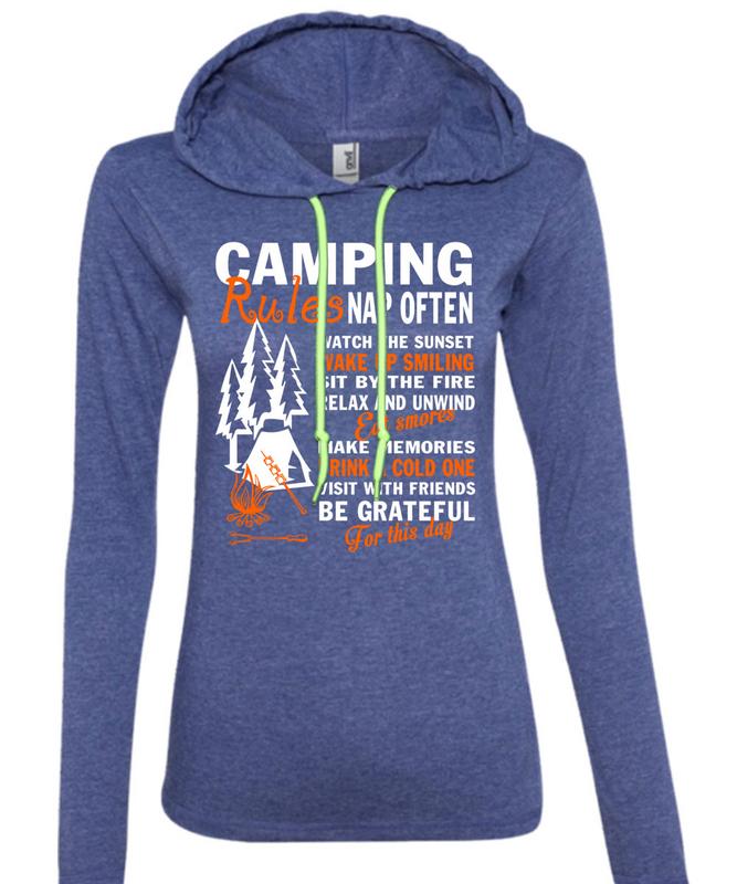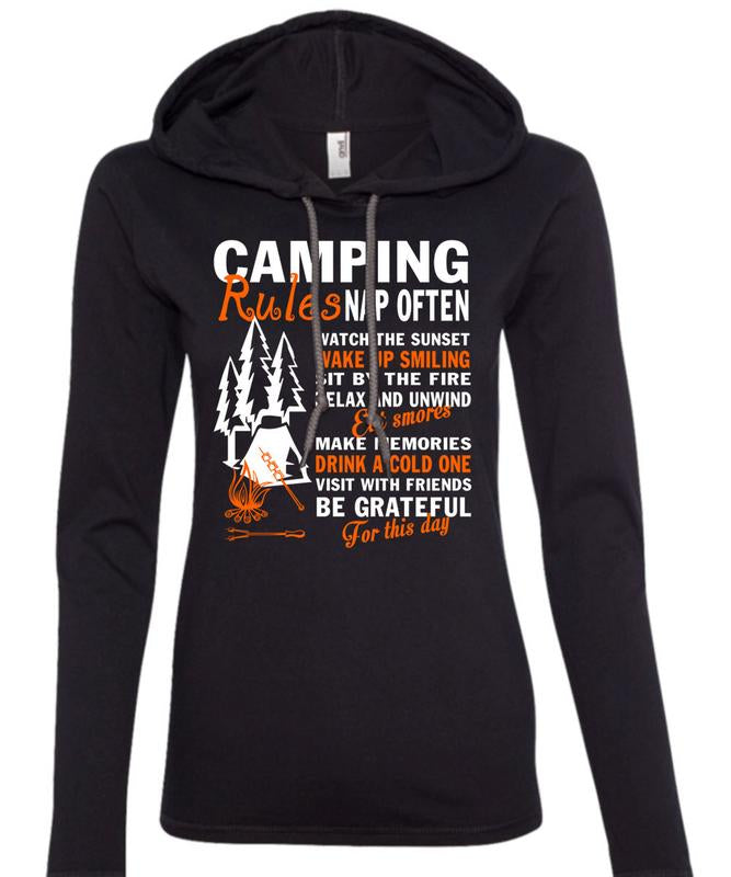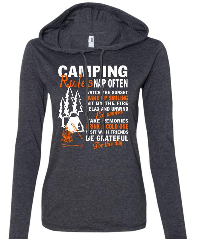 Camping Rules Nap Often T Shirt, Eat Smores Make Memories T Shirt (Anvil Ladies Ringspun Hooded)