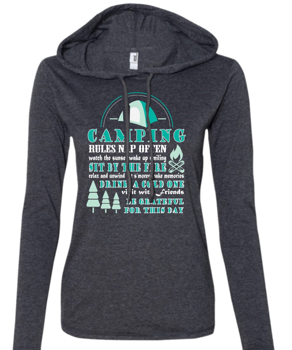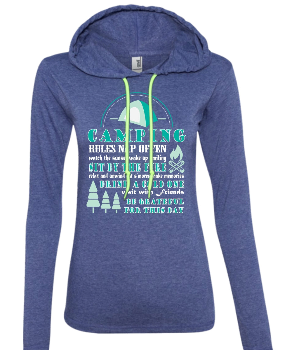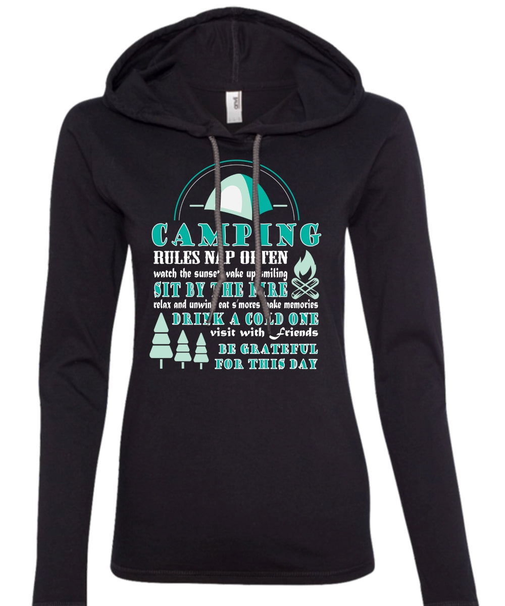 Camping Rules Nap Often T Shirt, Sit Buy The Fire T Shirt (Anvil Ladies Ringspun Hooded)