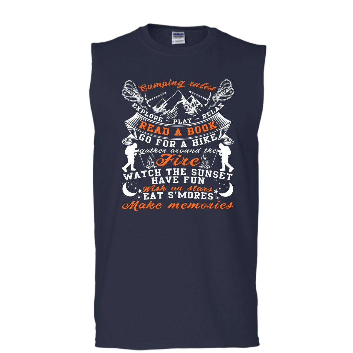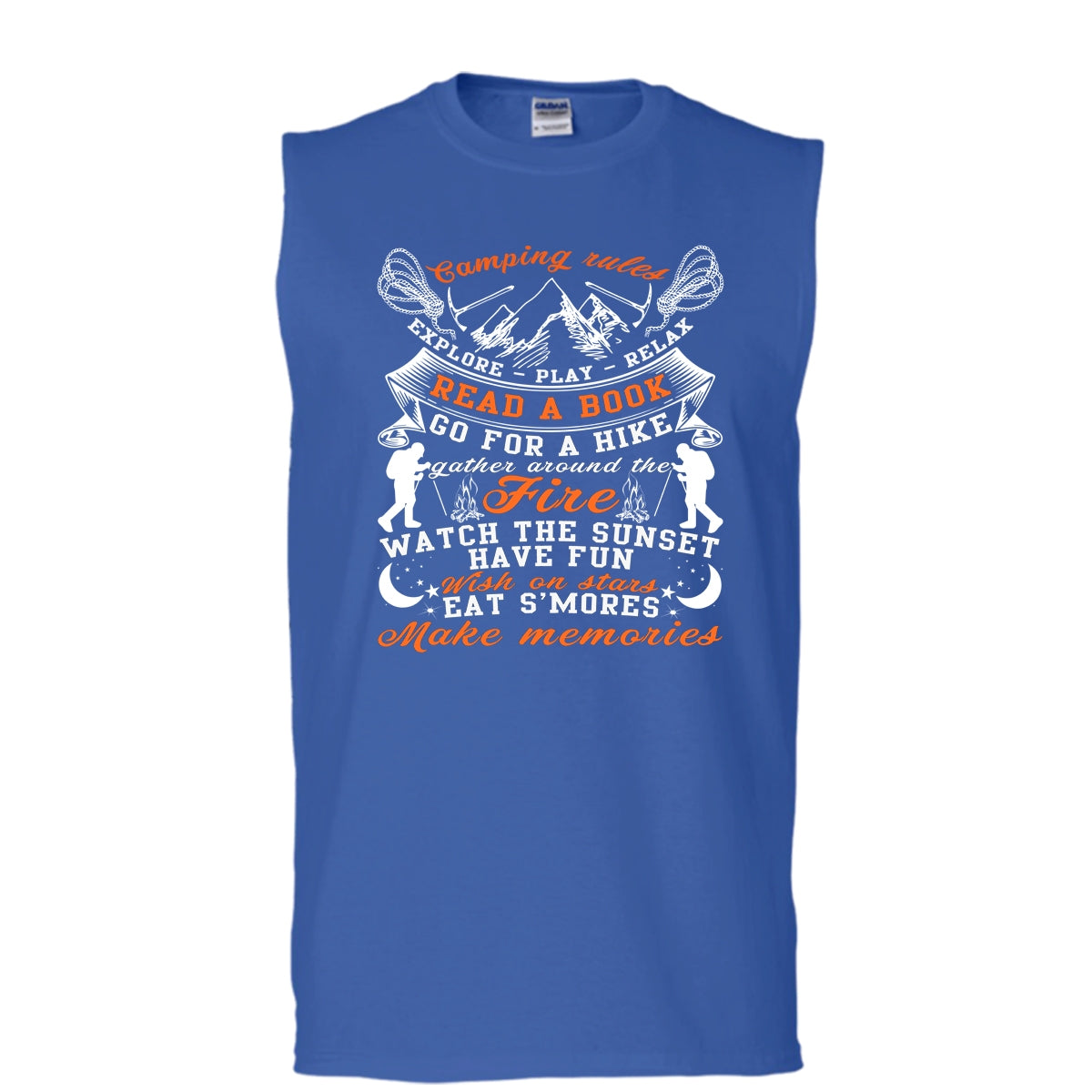 Camping Rules T Shirt, Explore-Play-Relax T Shirt, Cool T Shirt (Men's Cotton Sleeveless)