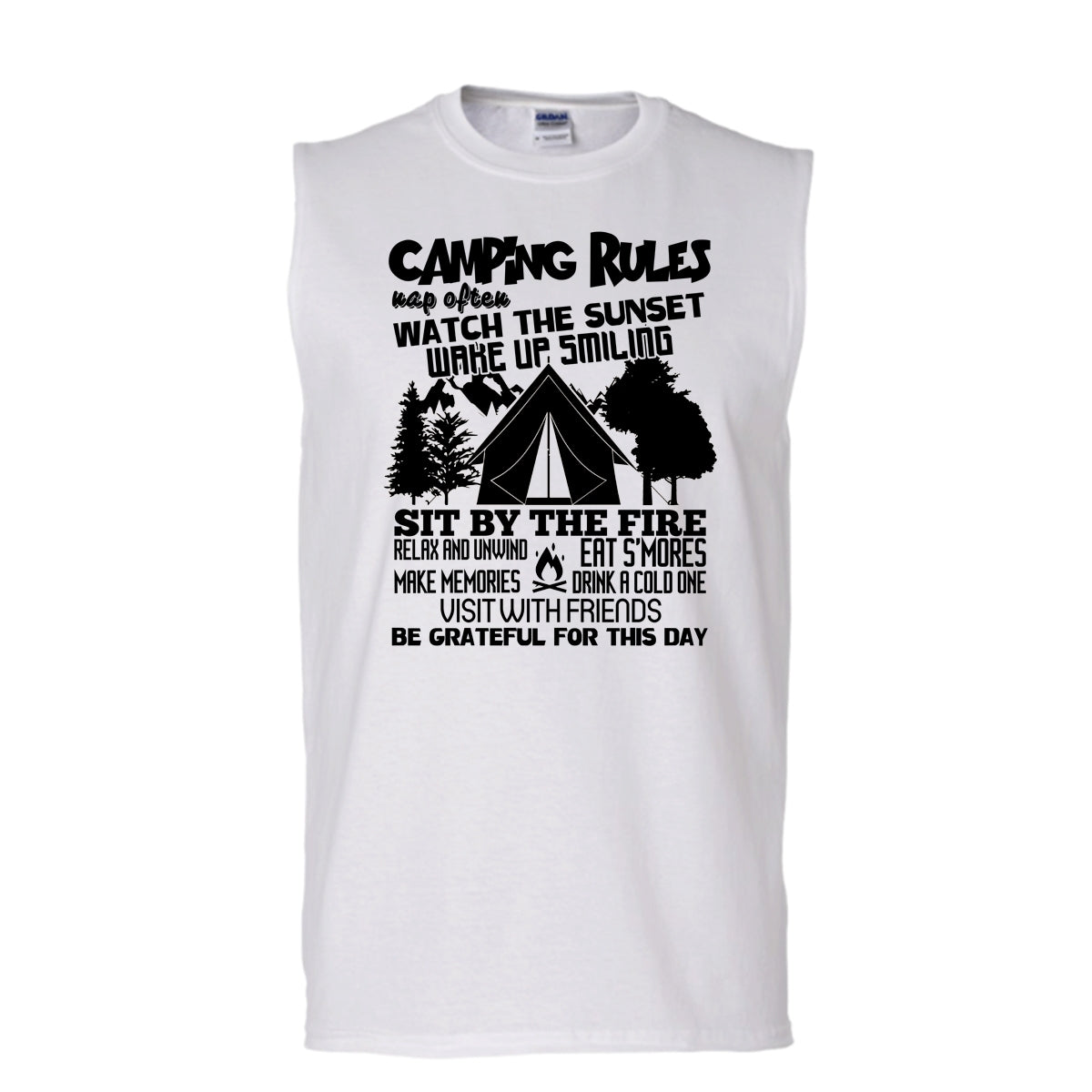 Camping Rules T Shirt, I Love Camping T Shirt, Awesome t-shirts (Men's Cotton Sleeveless)