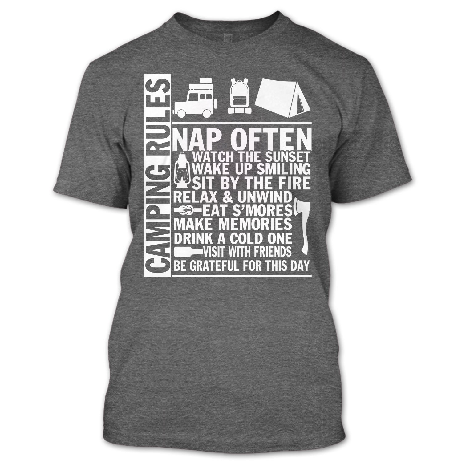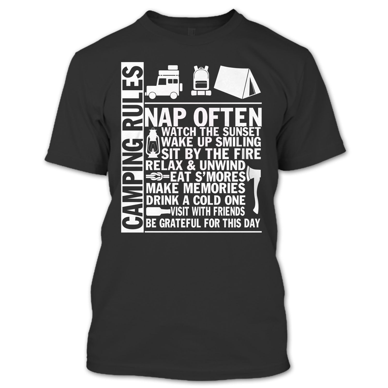Camping Rules T Shirt, Nap Often Watch The Sunset T Shirt