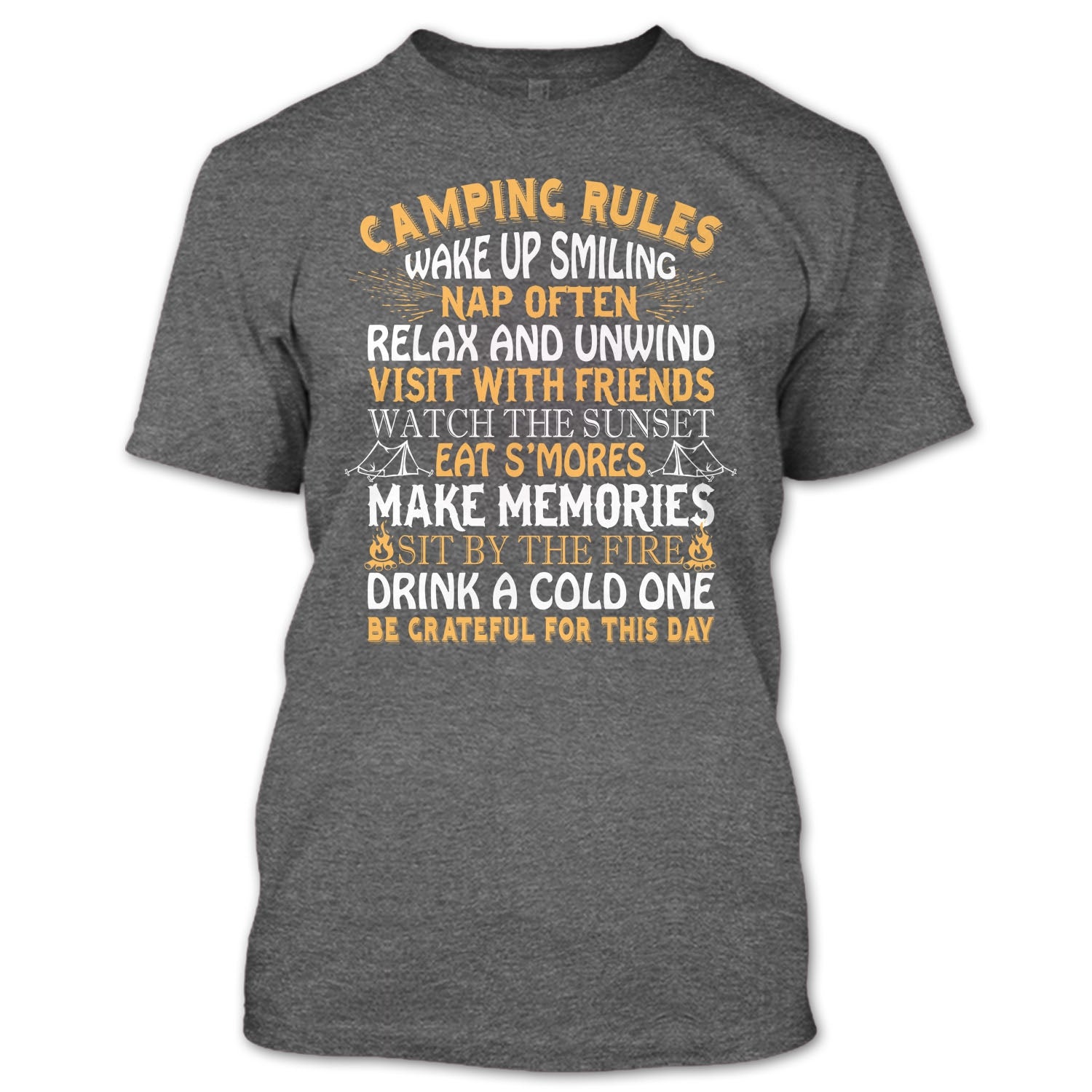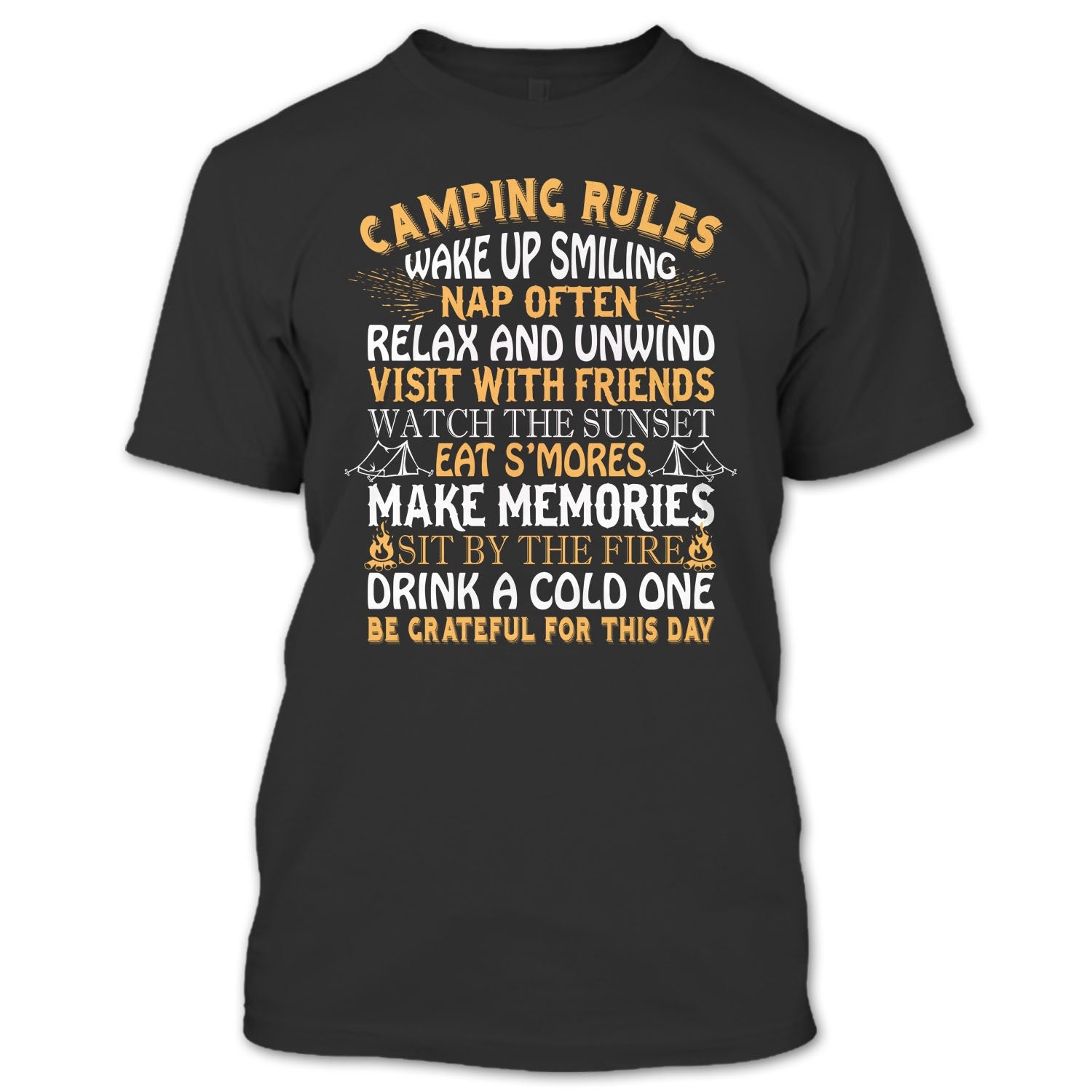 Camping Rules Wake Up Smiling T Shirt, Nap Often T Shirt
