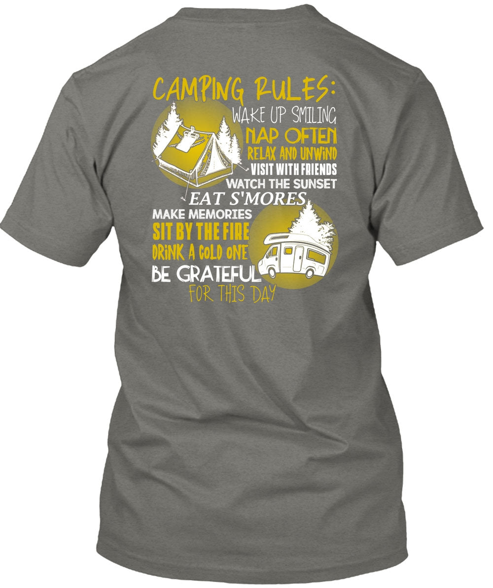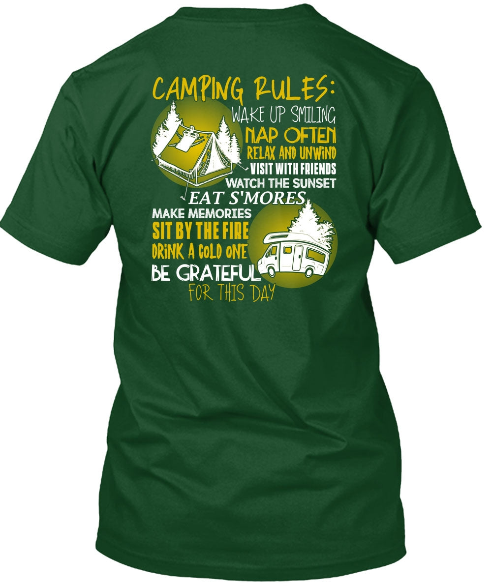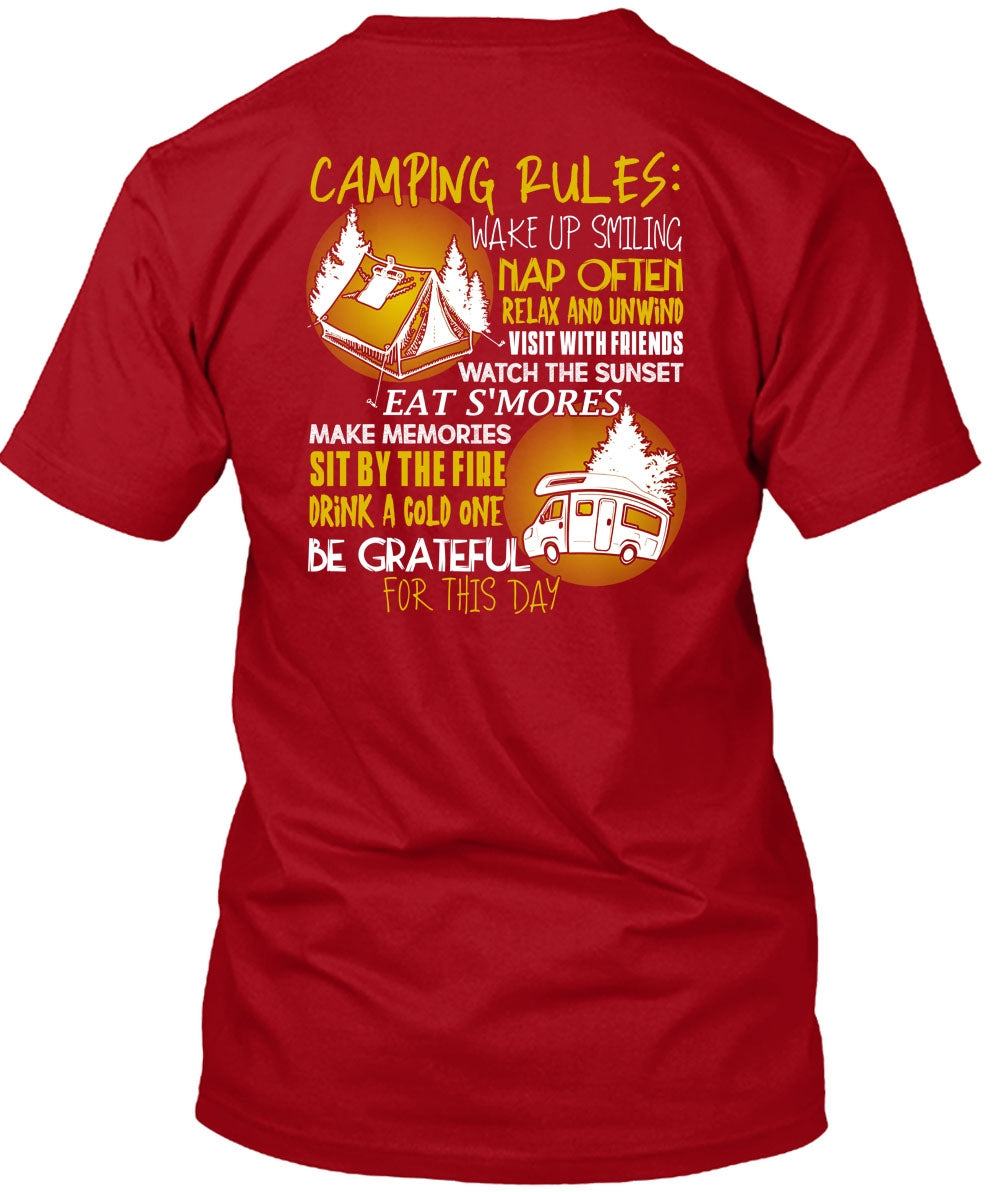 Camping Rules Wake Up Smiling T Shirt, Sit By The Fire T Shirt