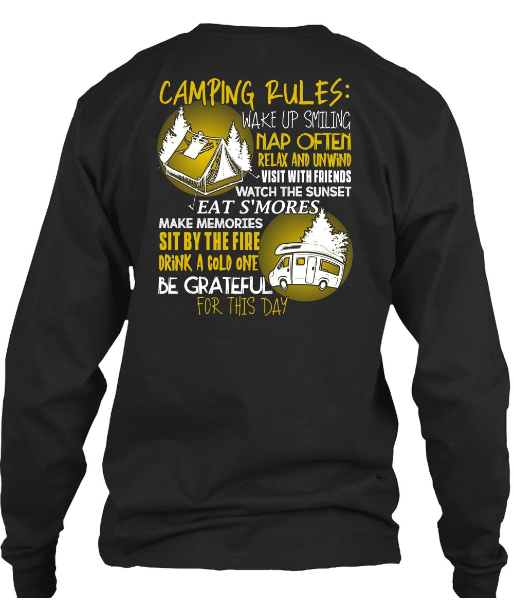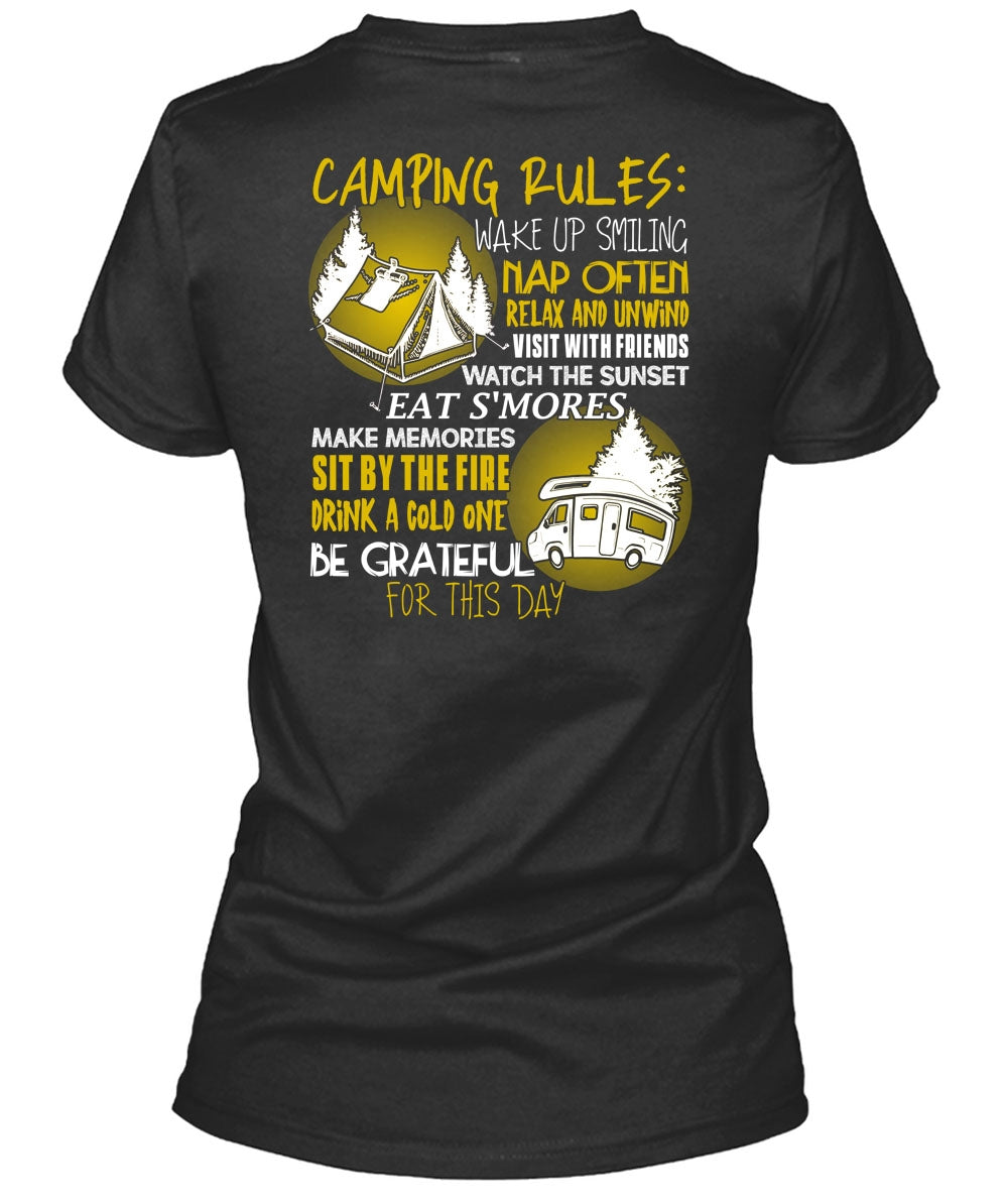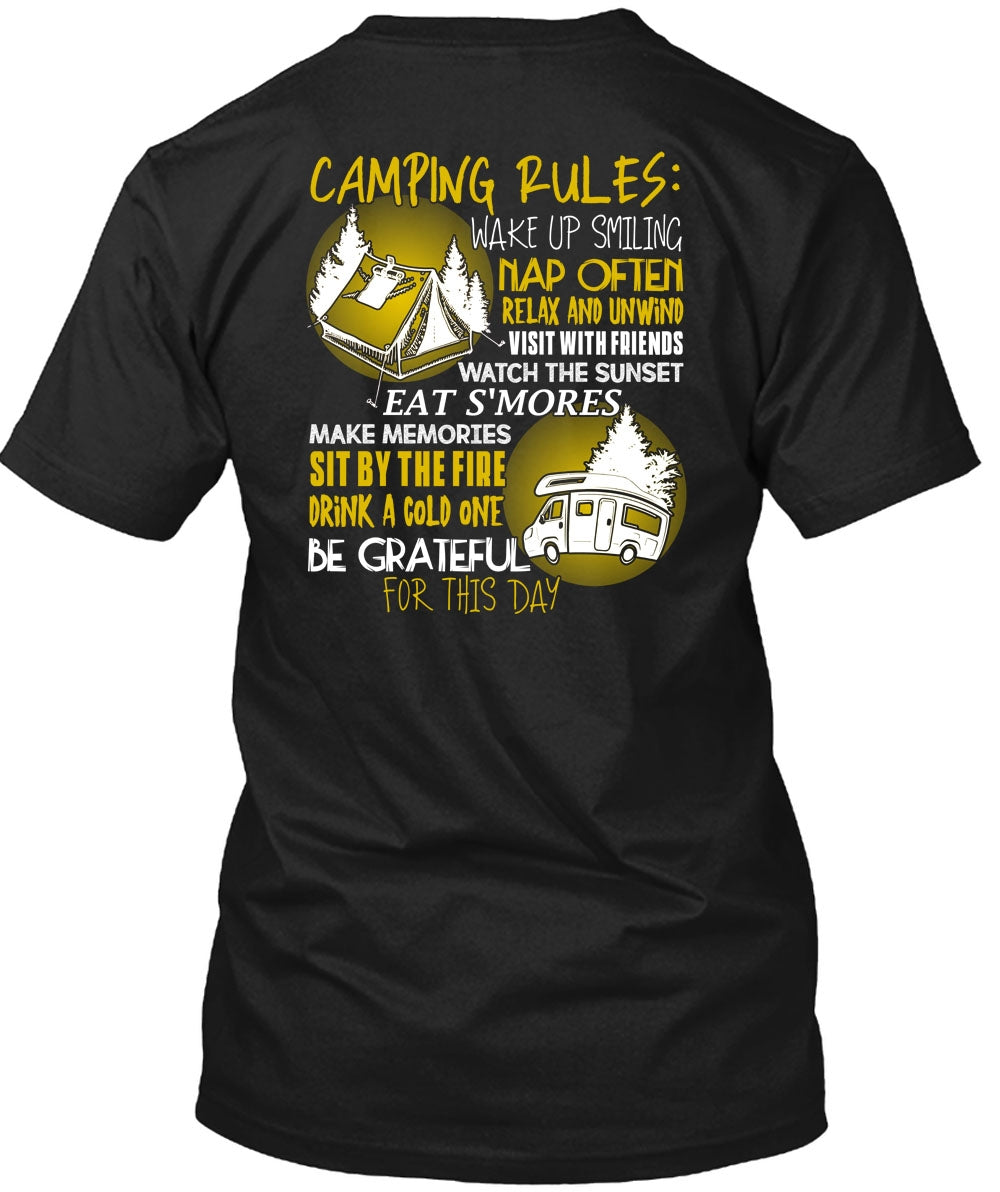 Camping Rules Wake Up Smiling T Shirt, Sit By The Fire T Shirt