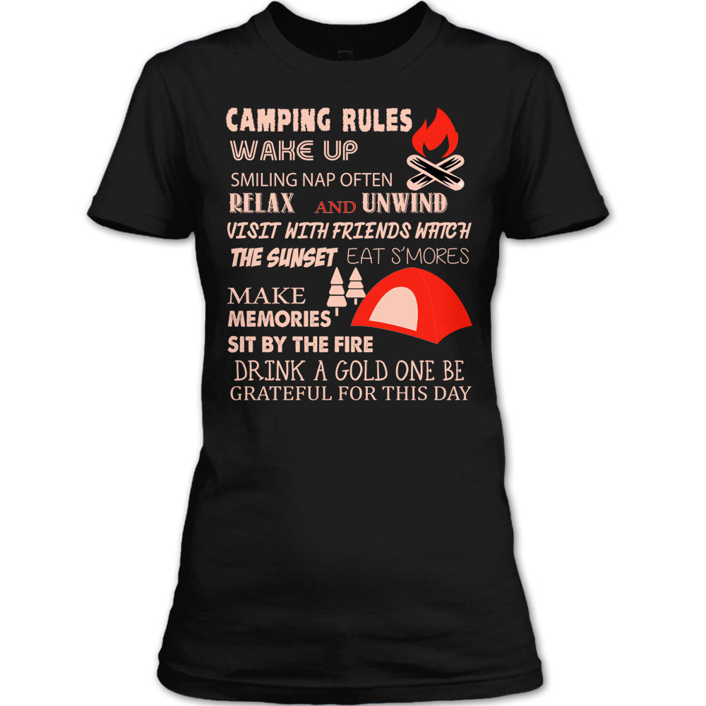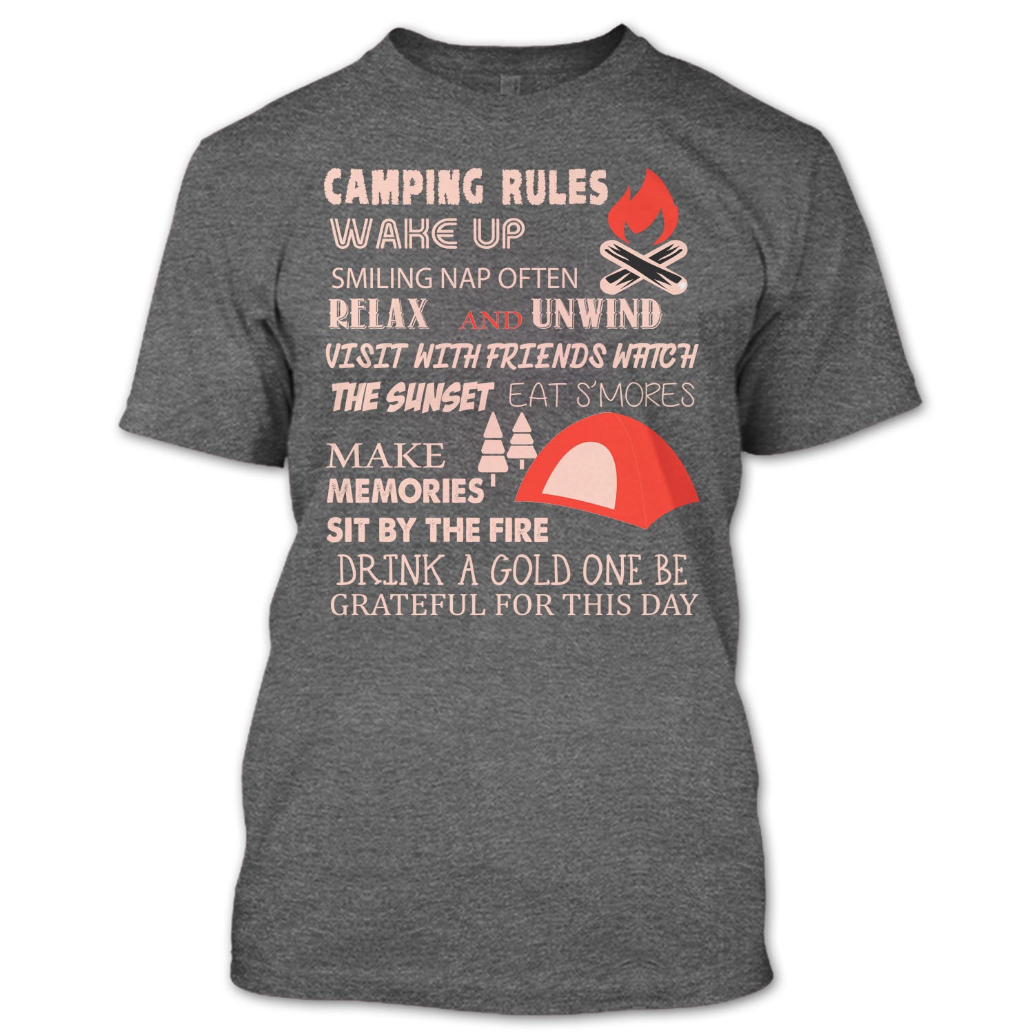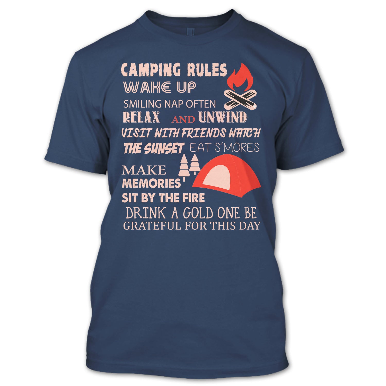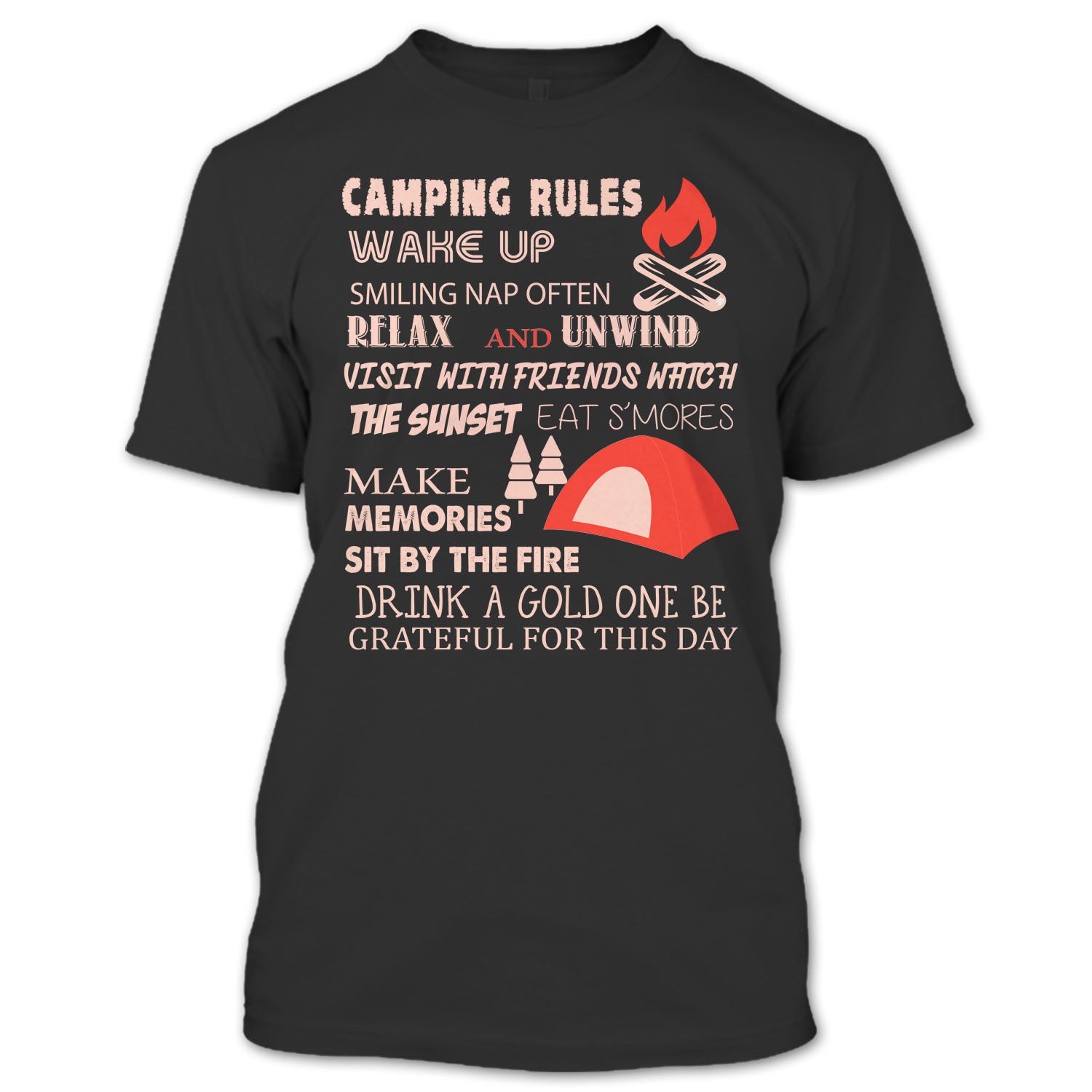 Camping Rules Wake Up T Shirt, Smiling Nap Often Relax And Unwind T Shirt