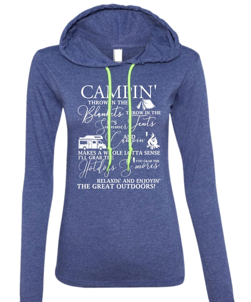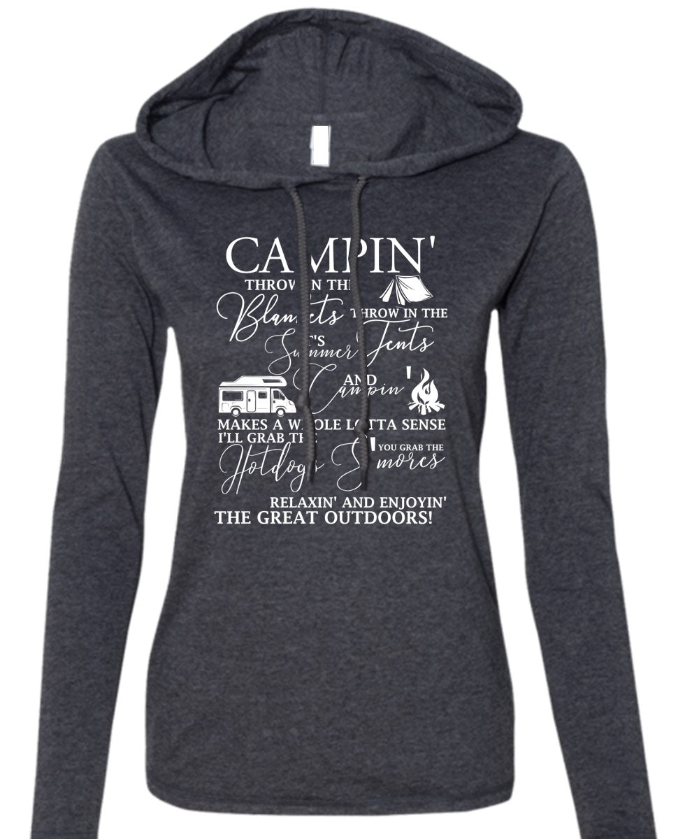 Camping Throw In The Blankets T Shirt, Being A Camper T Shirt (Anvil Ladies Ringspun Hooded)