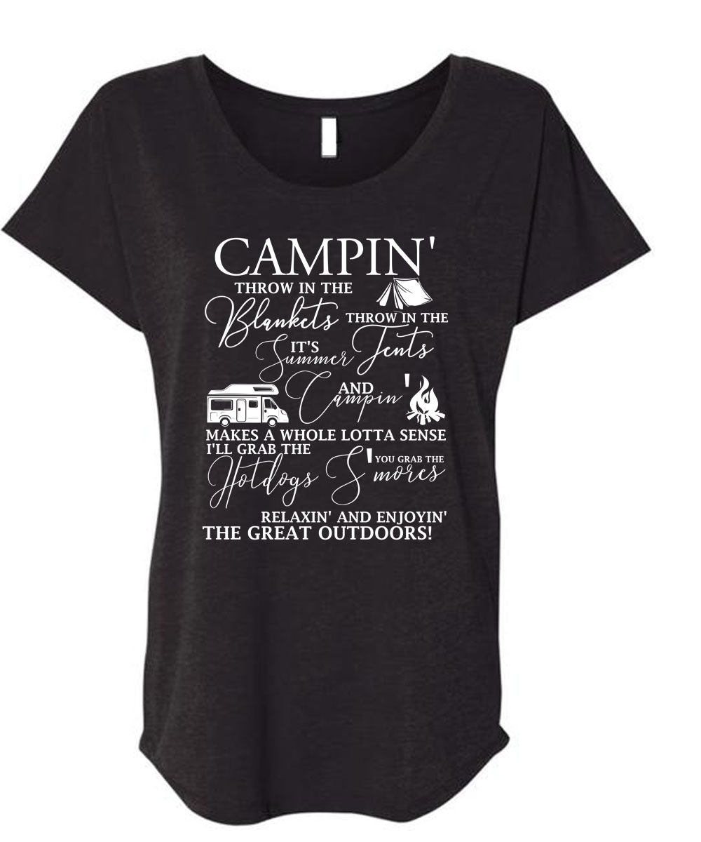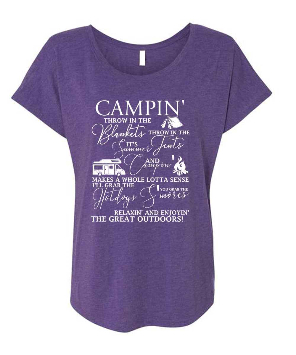 Camping Throw In The Blankets T Shirt, Being A Camper T Shirt, Cool Shirt (Ladies' Triblend Dolman Sleeve)