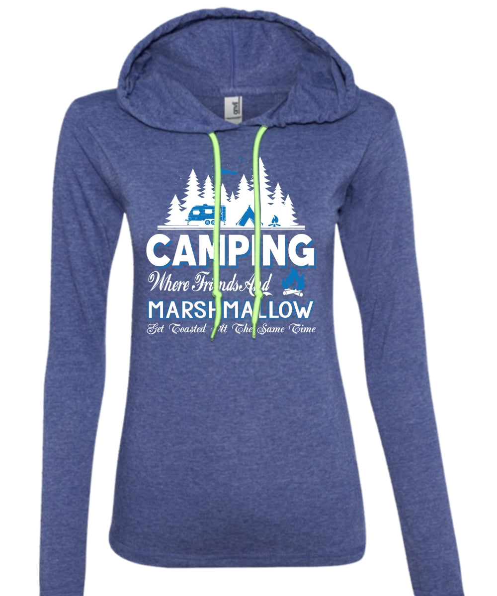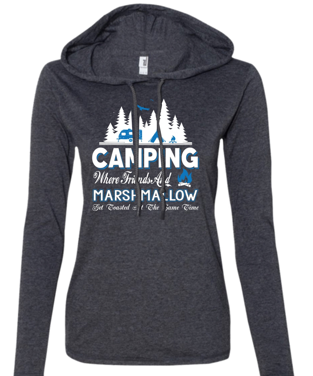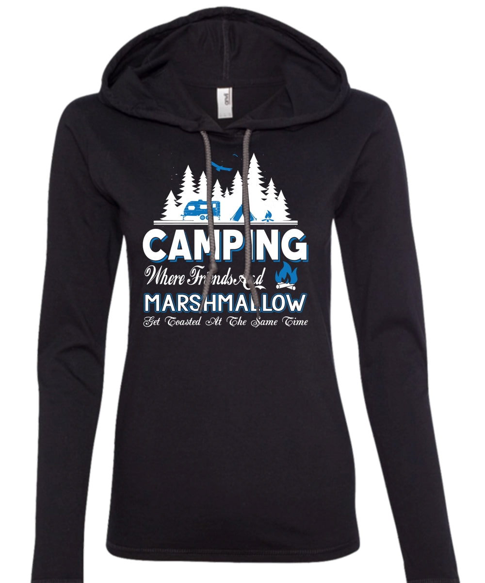 Camping Where Friends And Marshmallow T Shirt, Travel T Shirt (Anvil Ladies Ringspun Hooded)