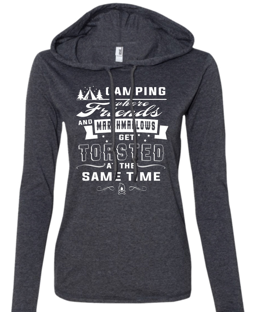 Camping Where Friends And Marshmallows Get Toasted At The Same Time T Shirt (Anvil Ladies Ringspun Hooded)