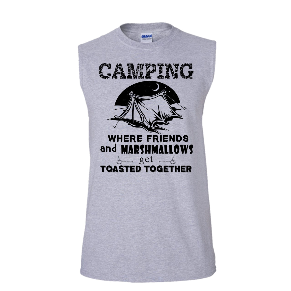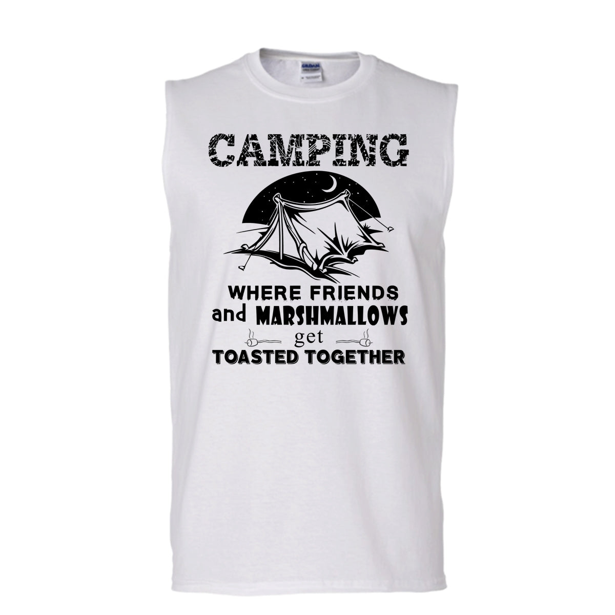 Camping Where Friends And Marshmallows Shirt, Cool Camper Shirt (Men's Cotton Sleeveless)