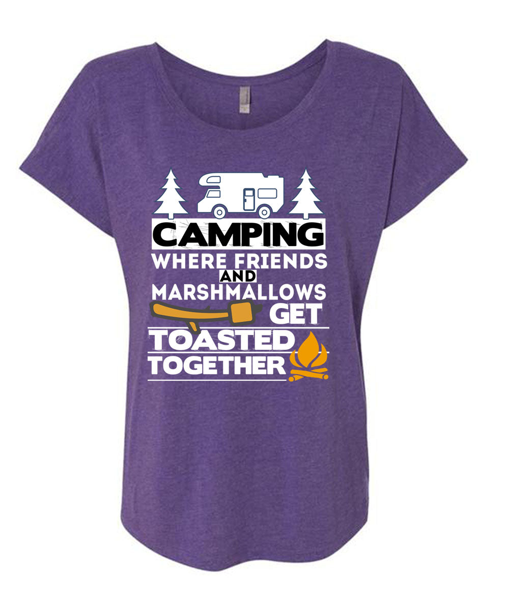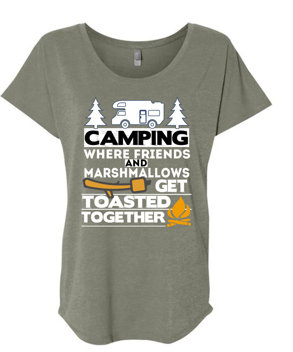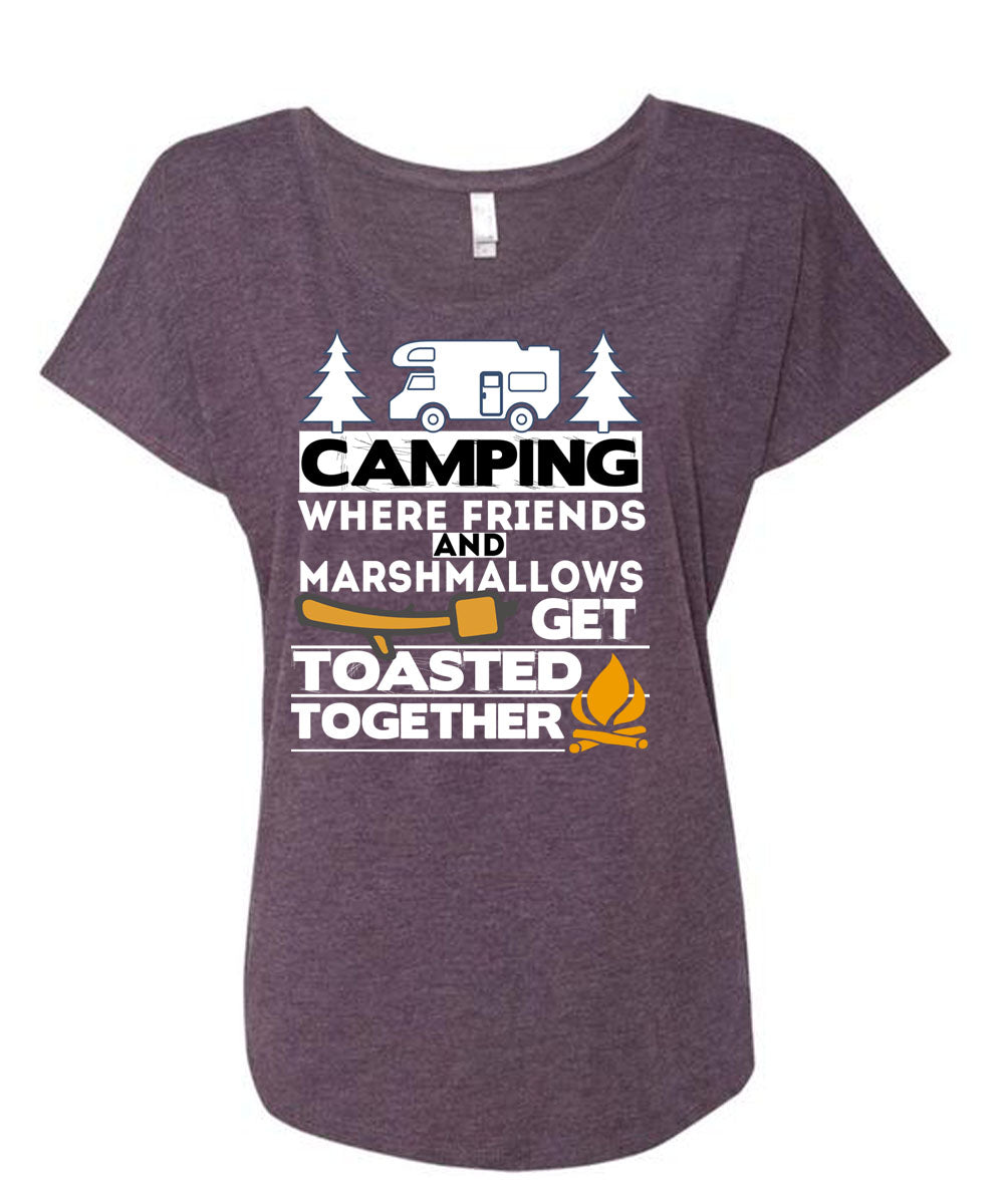 Camping Where Friends And Marshmallows T Shirt, Get Toasted Together T Shirt, Cool Shirt (Ladies' Triblend Dolman Sleeve)