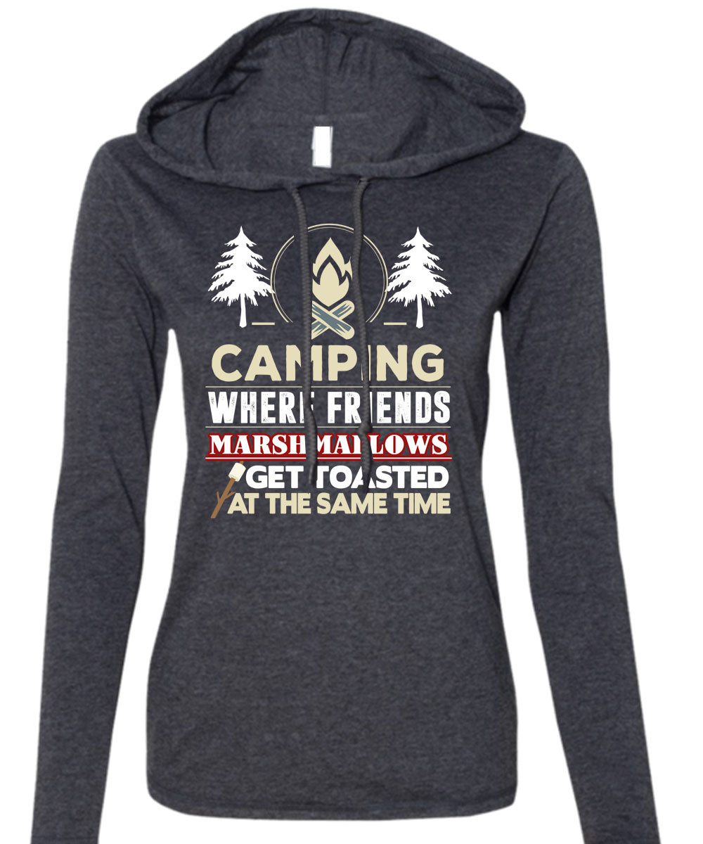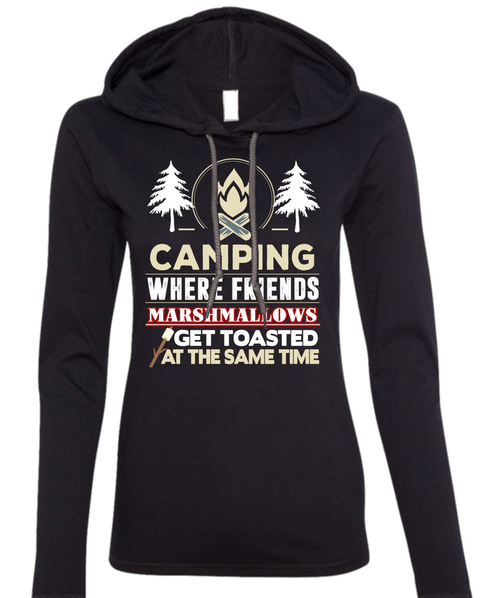 Camping Where Friends Marshmallows T Shirt, Get Toasted At The Same Time T Shirt (Anvil Ladies Ringspun Hooded)