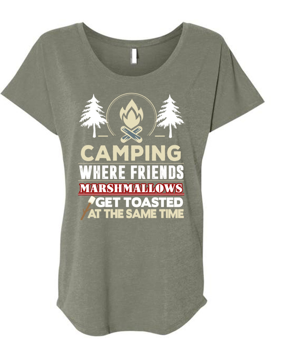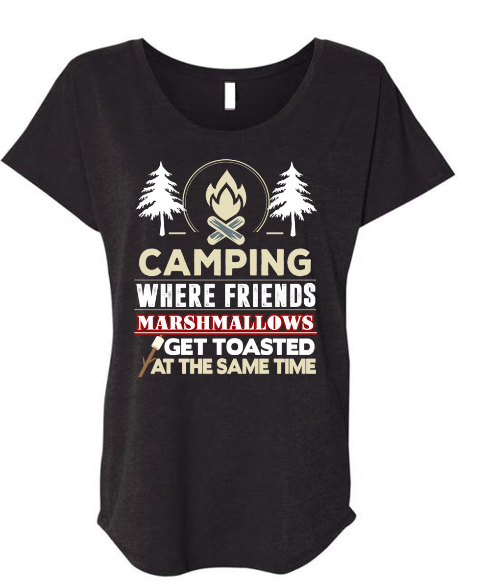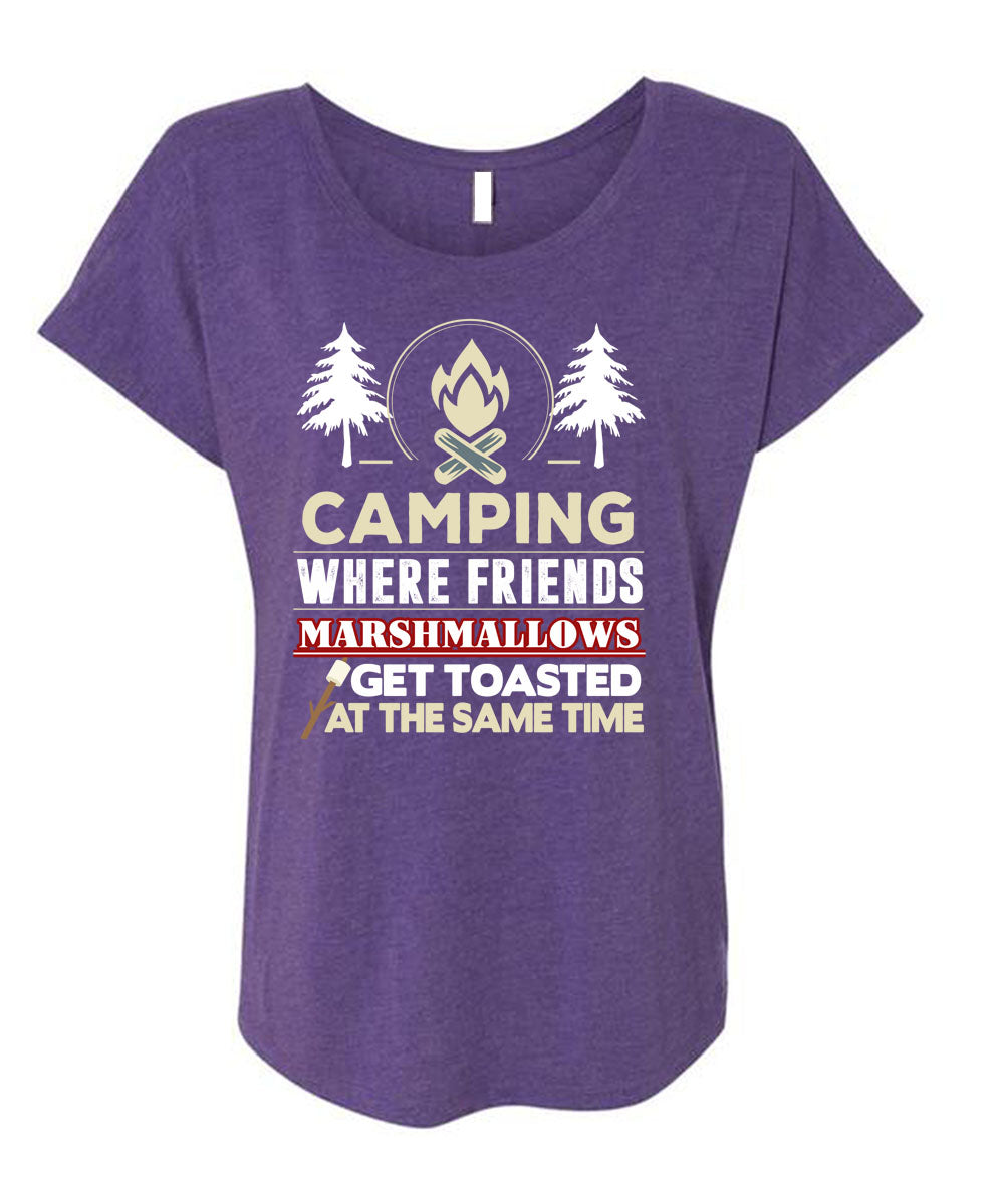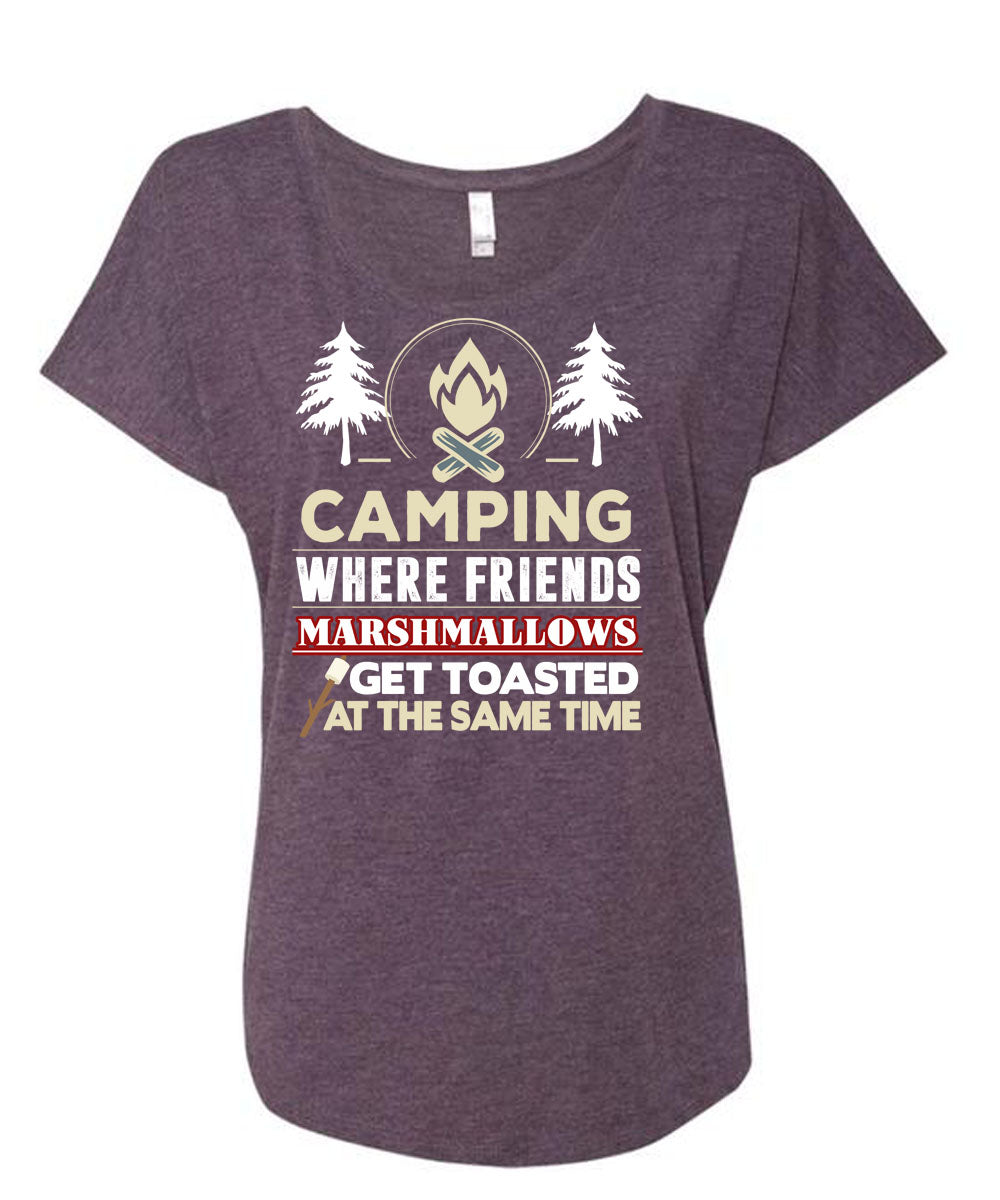 Camping Where Friends Marshmallows T Shirt, Get Toasted At The Same Time T Shirt, Cool Shirt (Ladies' Triblend Dolman Sleeve)