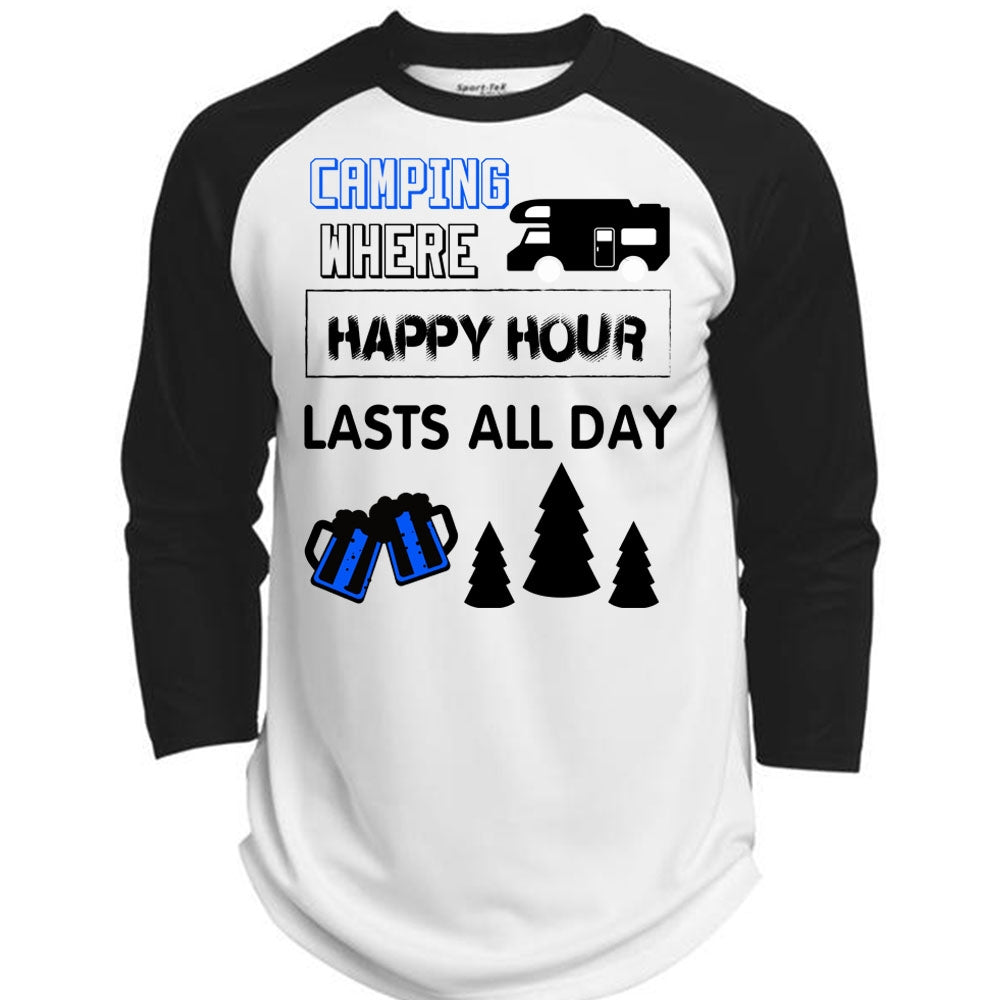 Camping Where Happy Hour Lasts All Day Shirt, Sport T Shirt (Polyester Game Baseball Jersey)