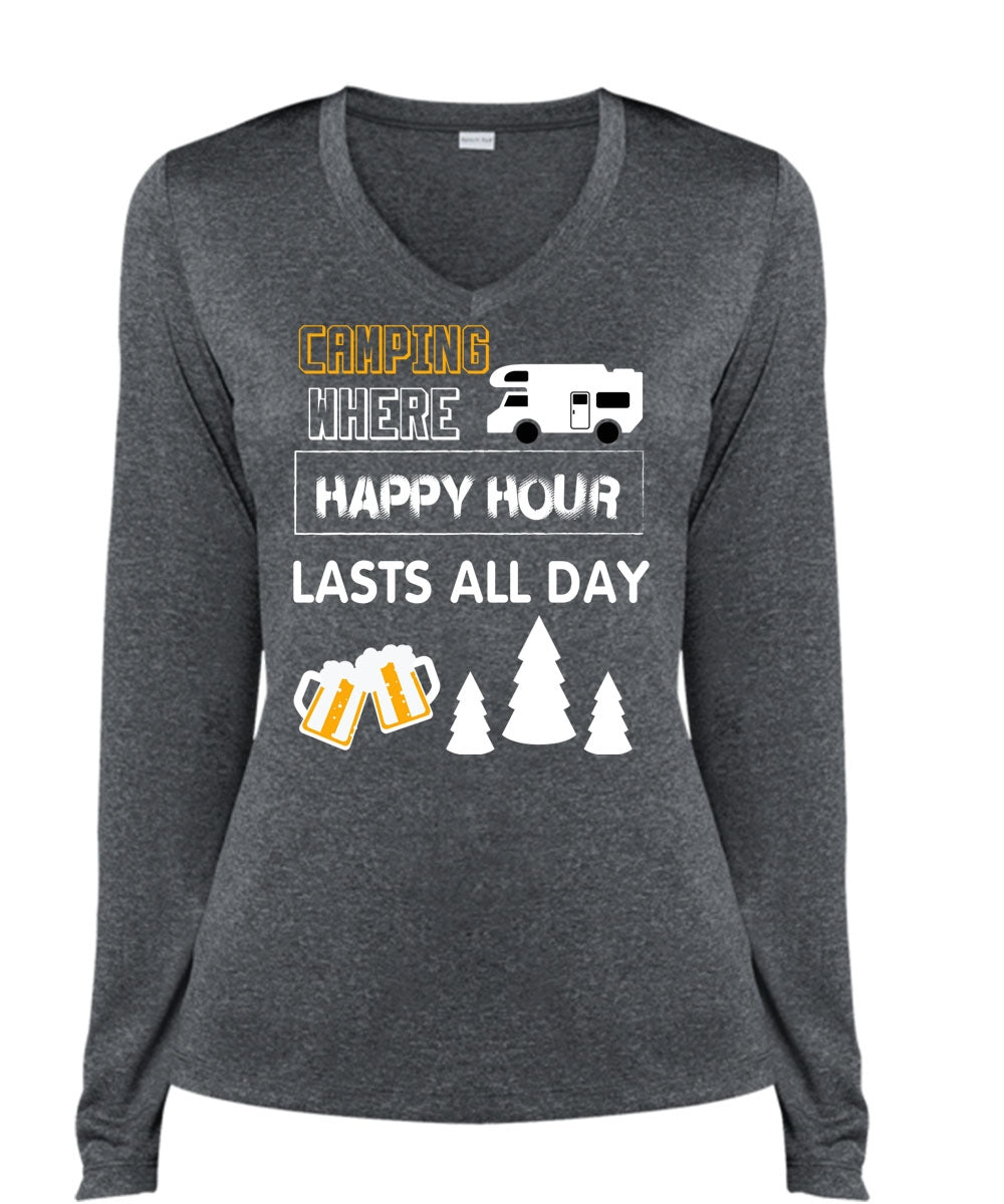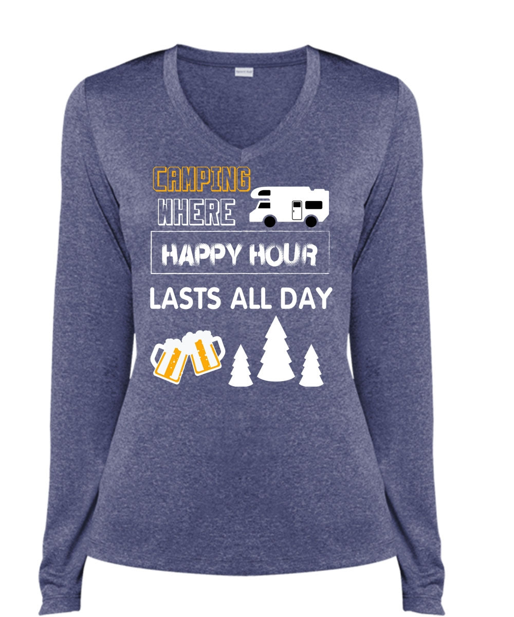 Camping Where Happy Hour Lasts All Day T Shirt, My Favorite Shirt (Ladies LS Heather V-Neck)