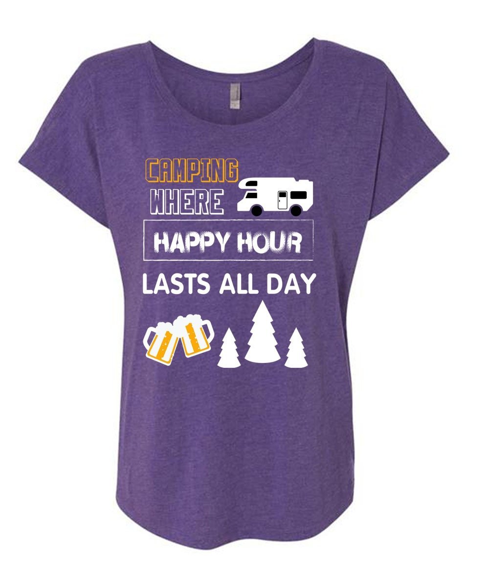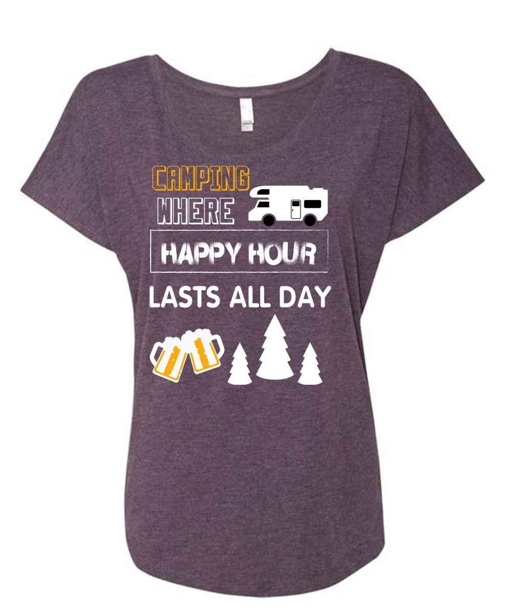 Camping Where Happy Hour Lasts All Day T Shirt, My Favorite Shirt (Ladies' Triblend Dolman Sleeve)