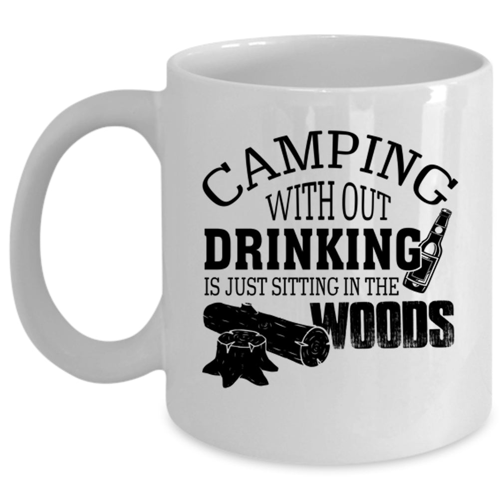 Camping With Drinking Cup, Sitting In The Woods Mug (Coffee Mug - White)