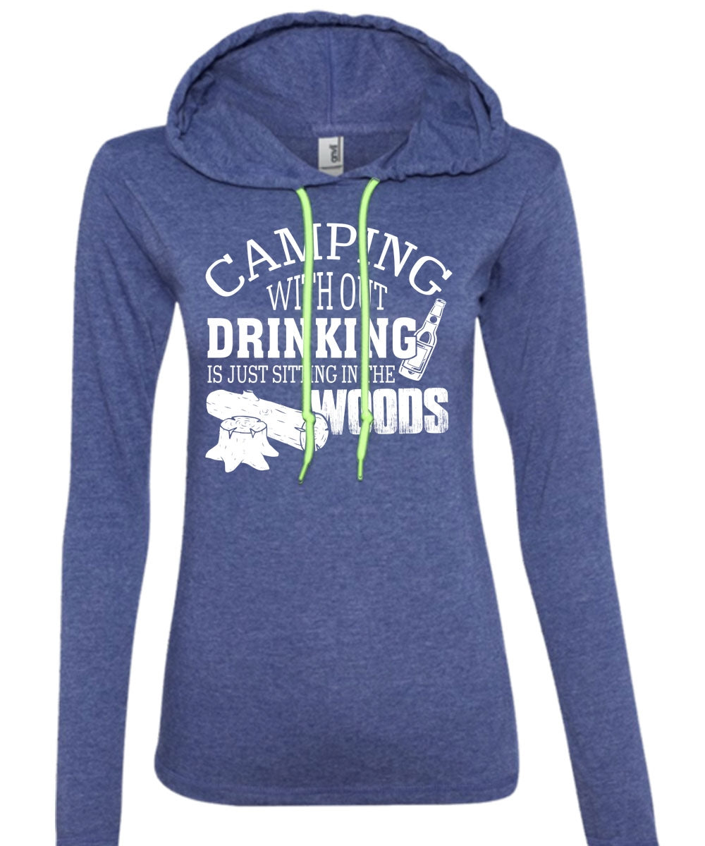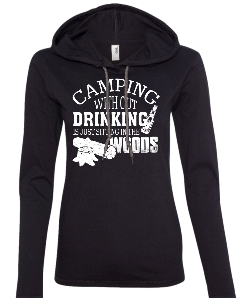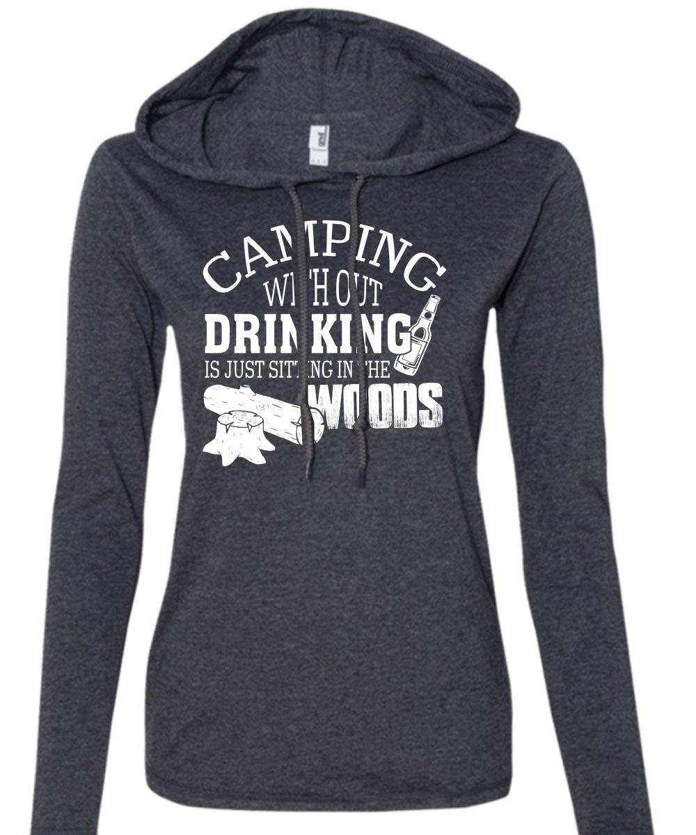 Camping Without Drinking Is Just Sitting In The Woods T Shirt, Travel T Shirt (Anvil Ladies Ringspun Hooded)