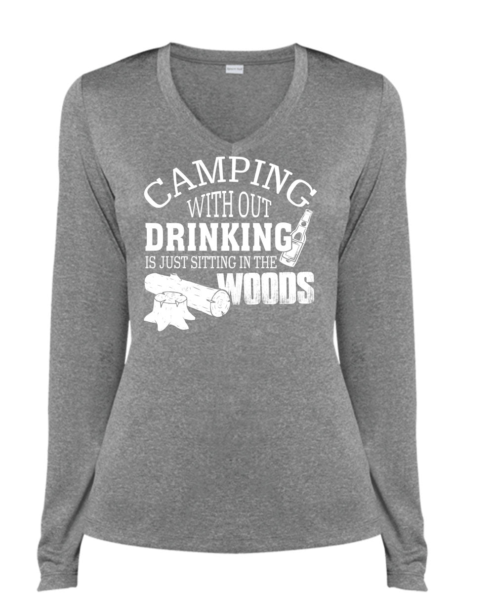 Camping Without Drinking Is Just Sitting In The Woods T Shirt, Travel T Shirt (Ladies LS Heather V-Neck)