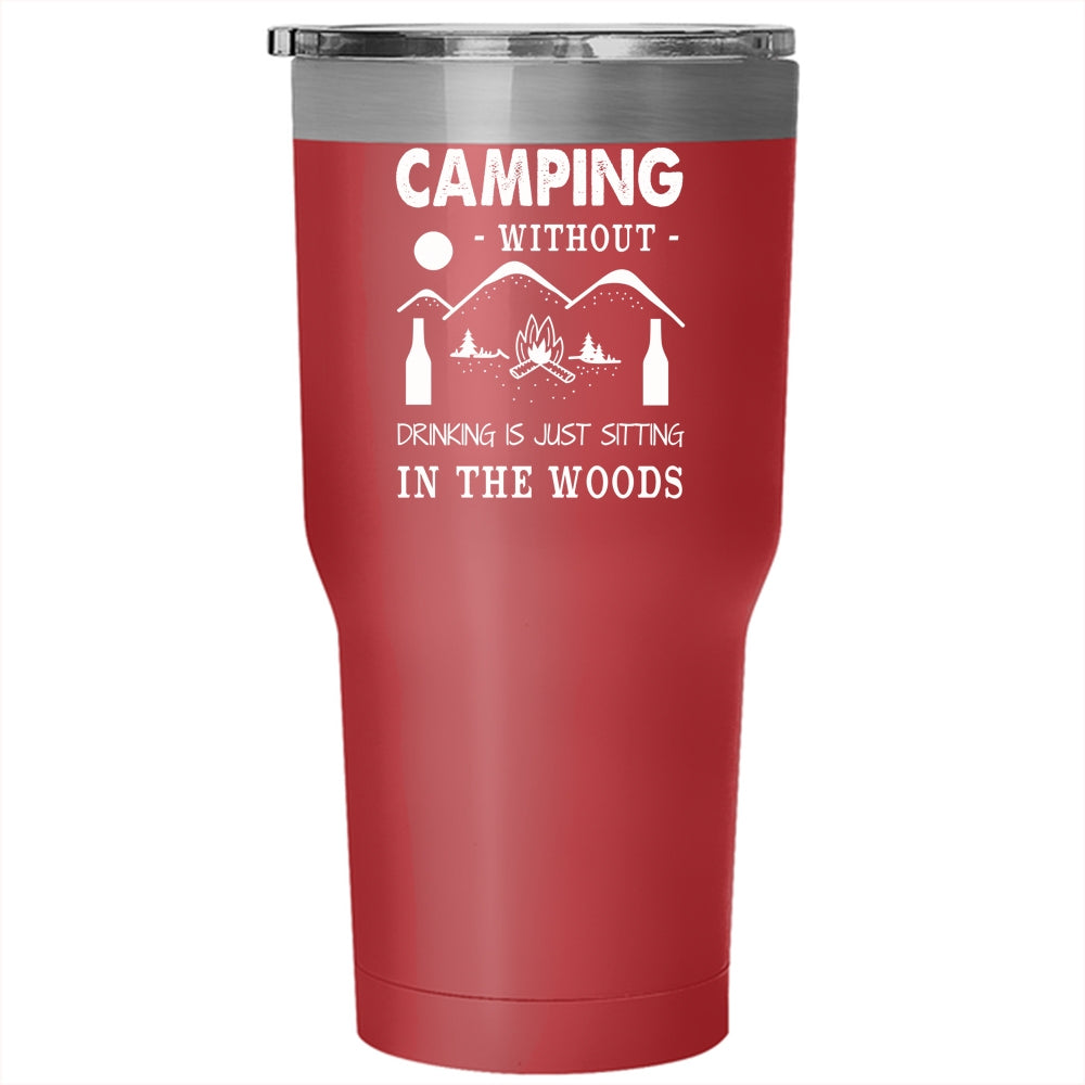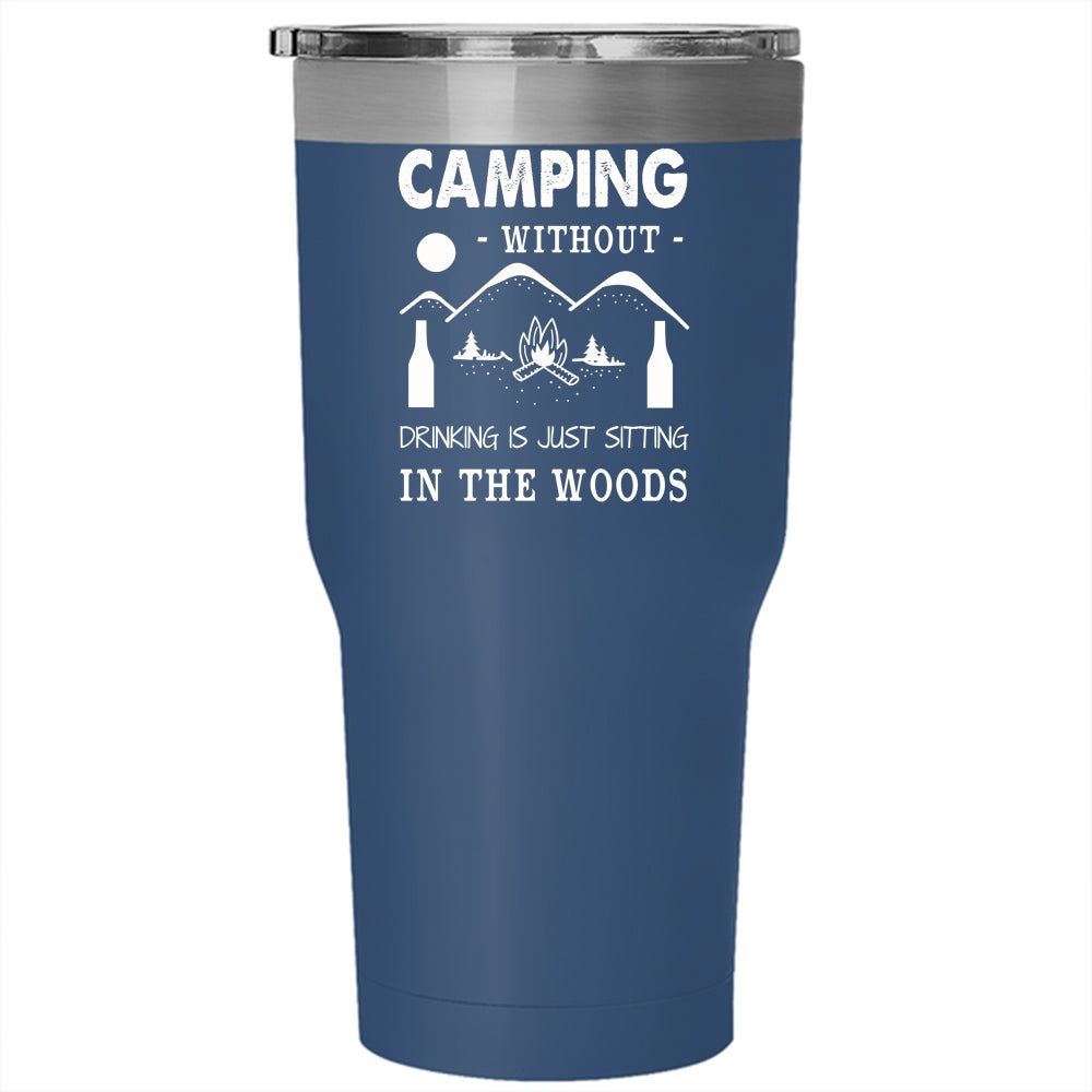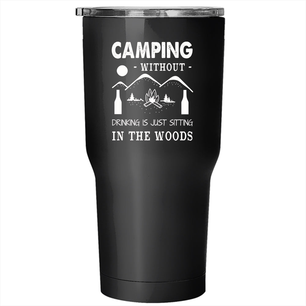 Camping Without Drinking Tumbler 30 oz Stainless Steel, Sitting In The Woods Travel Mug