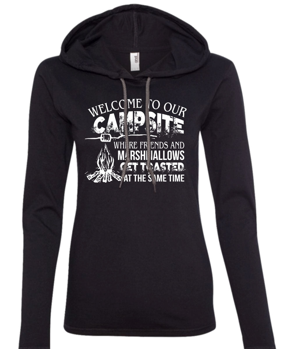 Campsite Where Friends And Marshmallows Get Toasted T Shirt, Travel T Shirt (Anvil Ladies Ringspun Hooded)