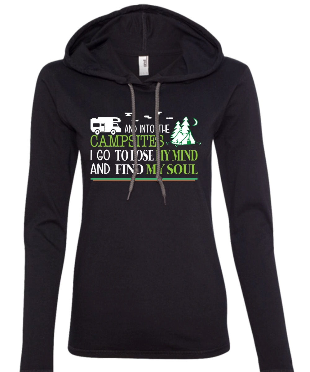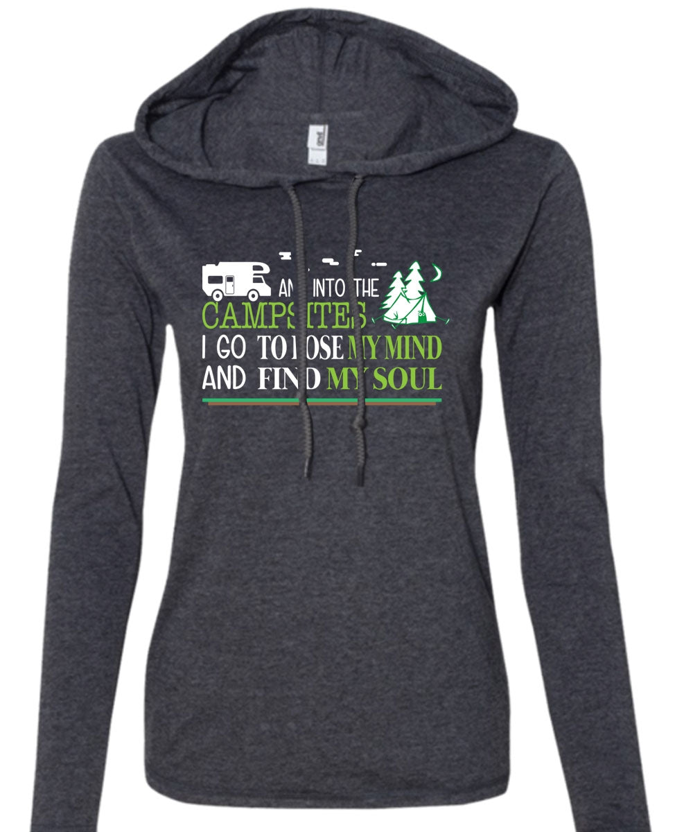 Campsites I Go To Lose My Mind And Find My Soul T Shirt, Travel T Shirt (Anvil Ladies Ringspun Hooded)