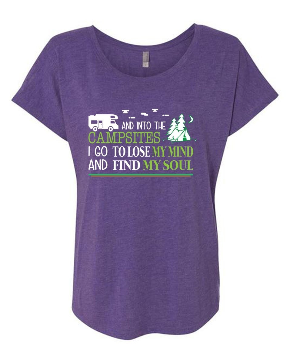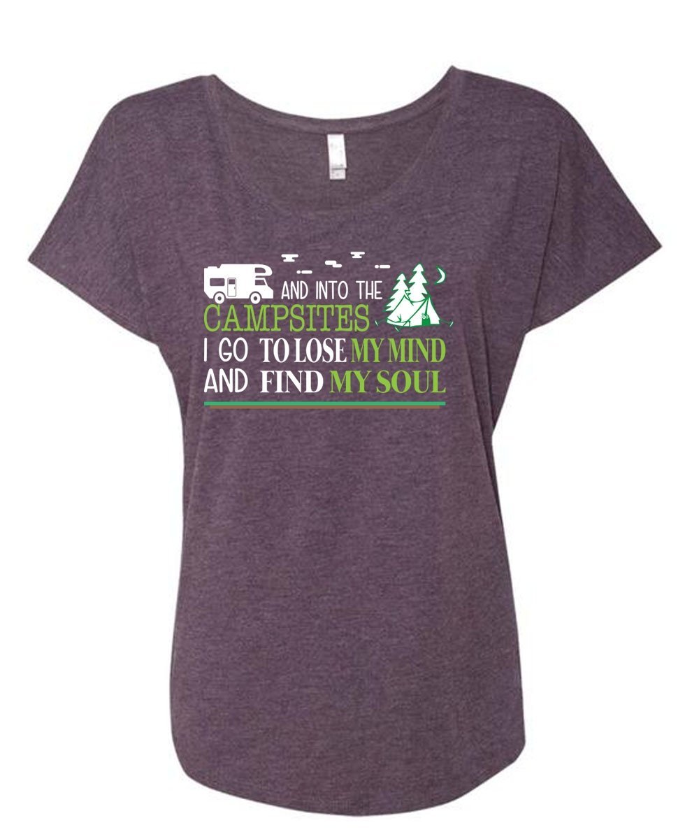 Campsites I Go To Lose My Mind And Find My Soul T Shirt, Travel T Shirt (Ladies' Triblend Dolman Sleeve)