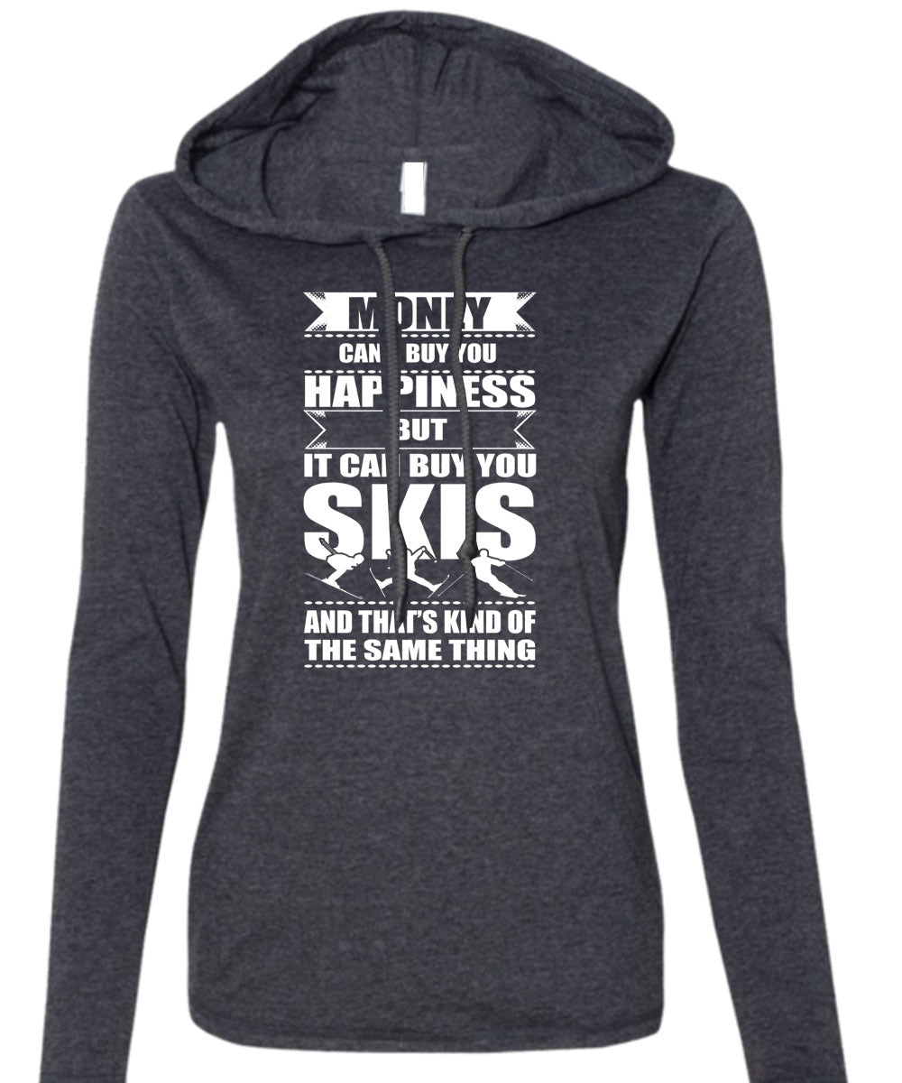 Can Buy You Skis T Shirt, Money Can't Buy You Happiness T Shirt (Anvil Ladies Ringspun Hooded)