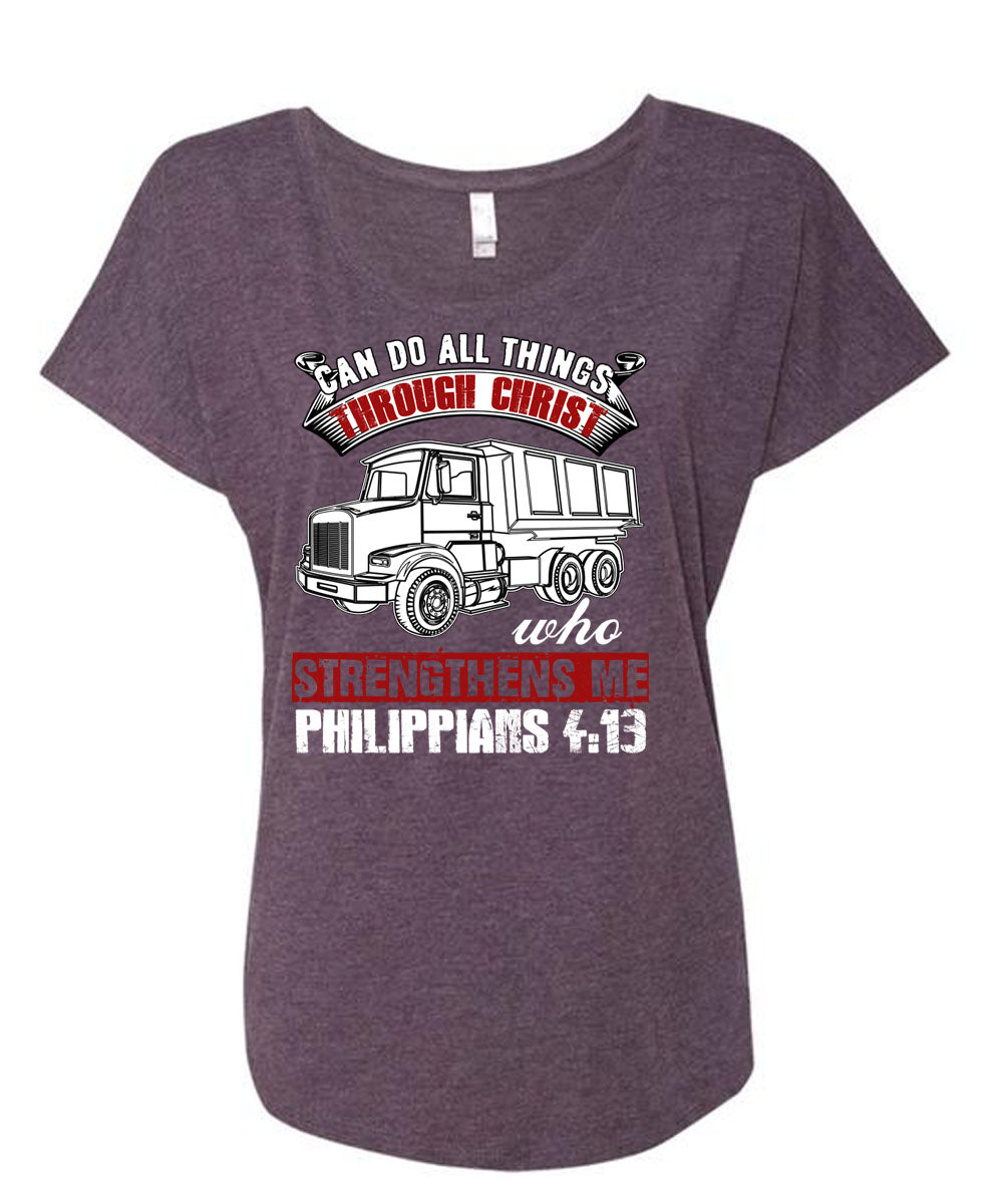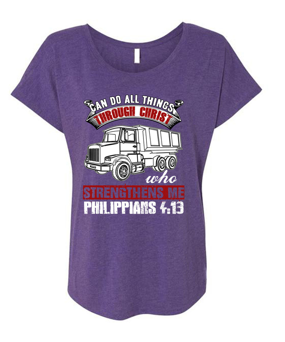 Can Do All Things Through Christ T Shirt, Strengthens Me Philippians T Shirt, Cool Shirt (Ladies' Triblend Dolman Sleeve)