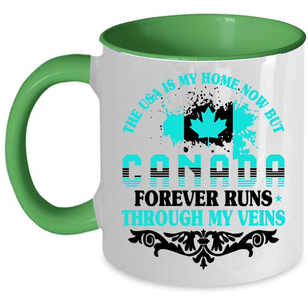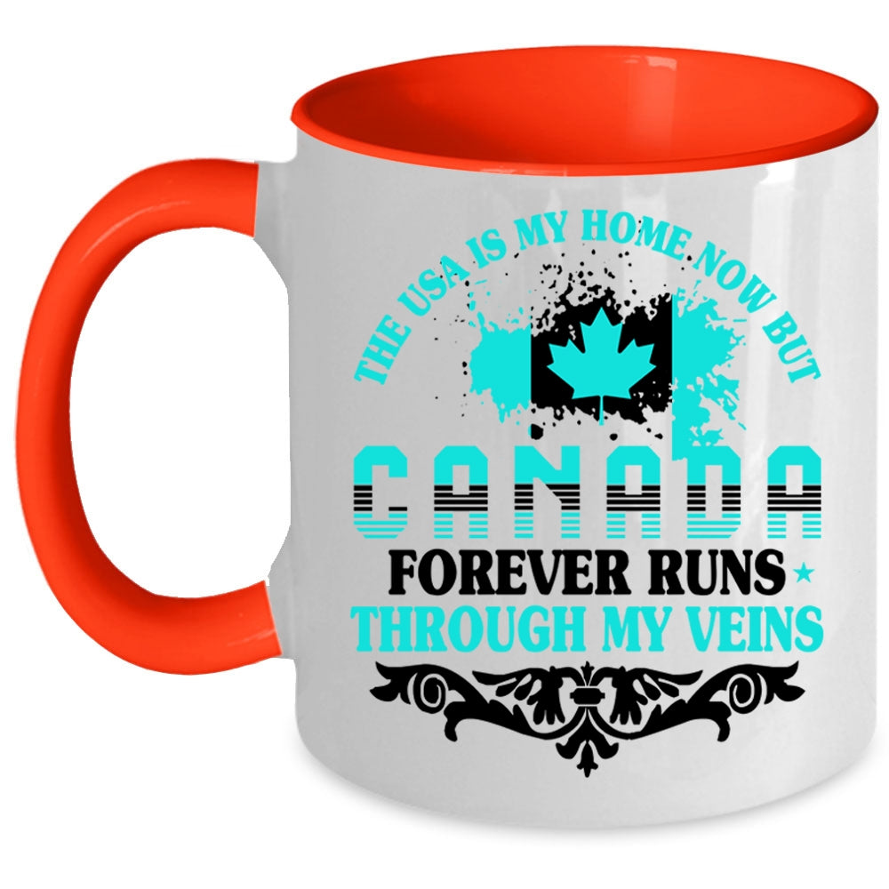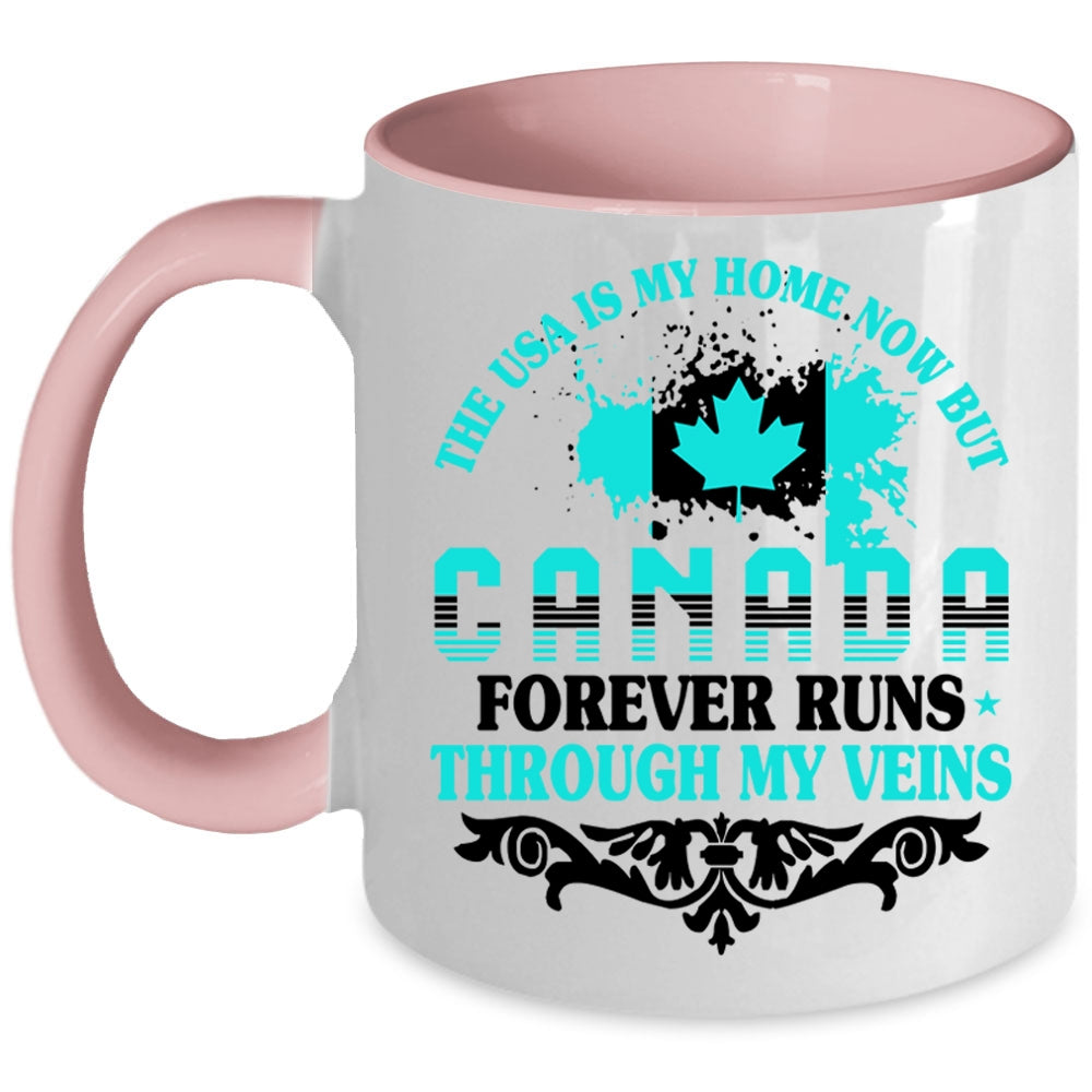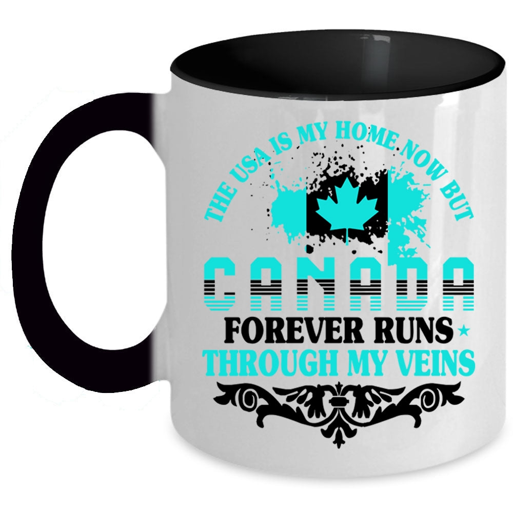 Canada Forever Runs Through My Veins Coffee Mug, The USA Is My Home Accent Mug