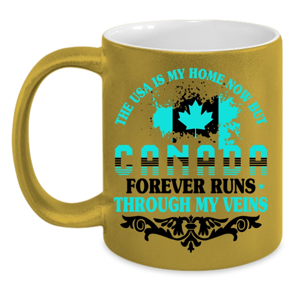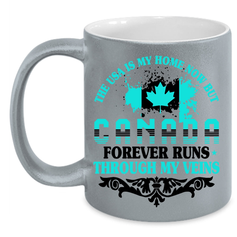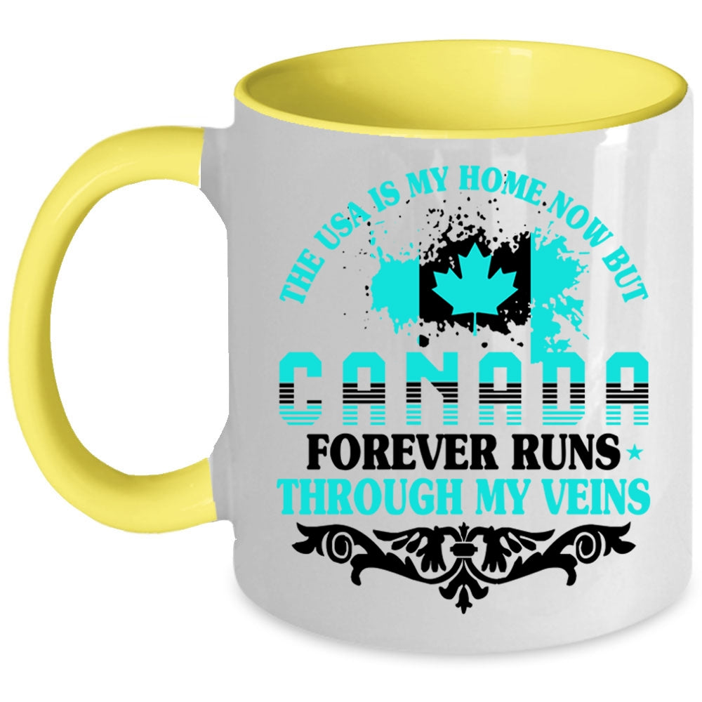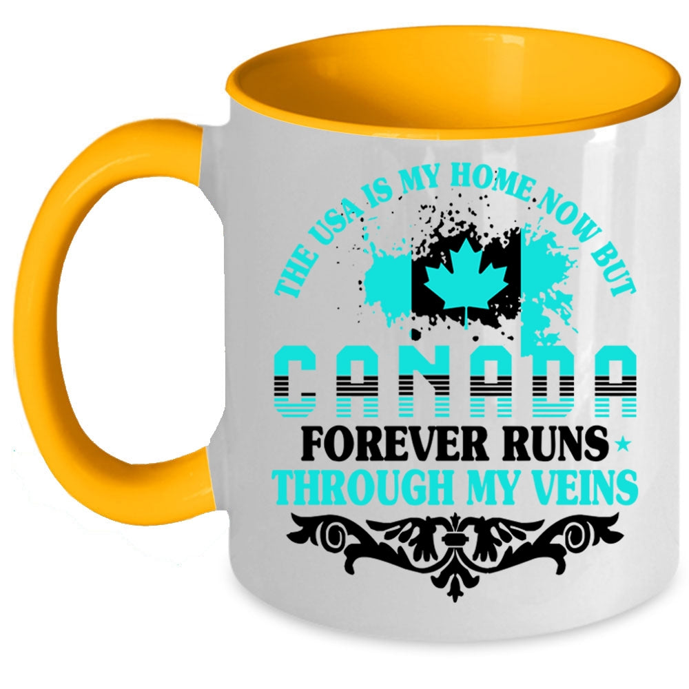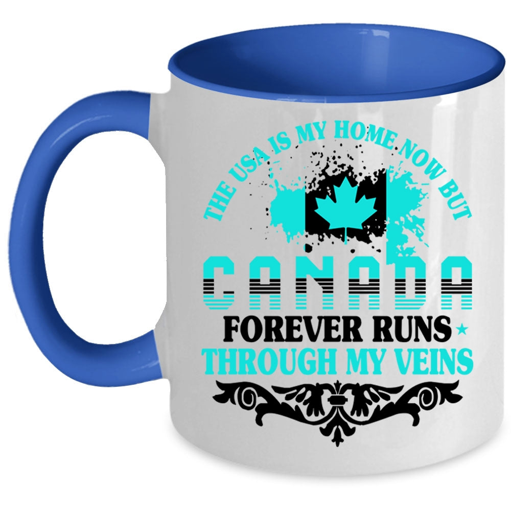 Canada Forever Runs Through My Veins Coffee Mug, The USA Is My Home Accent Mug