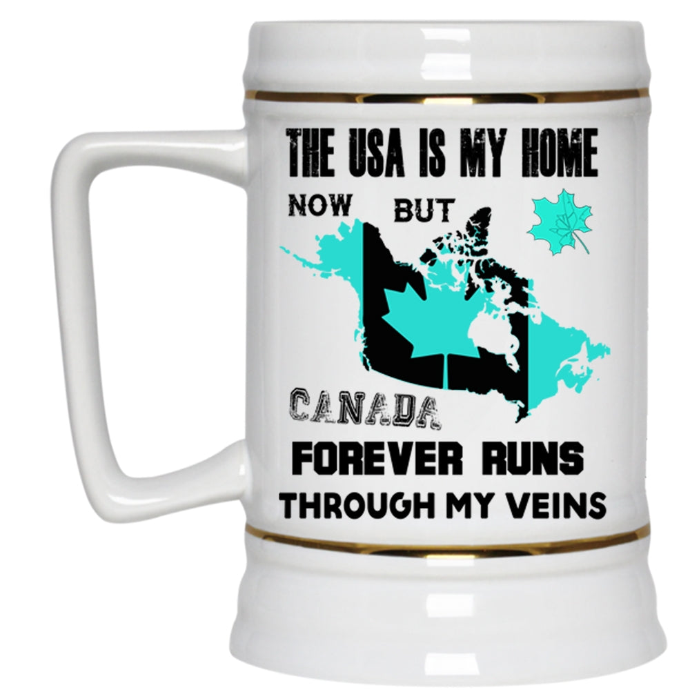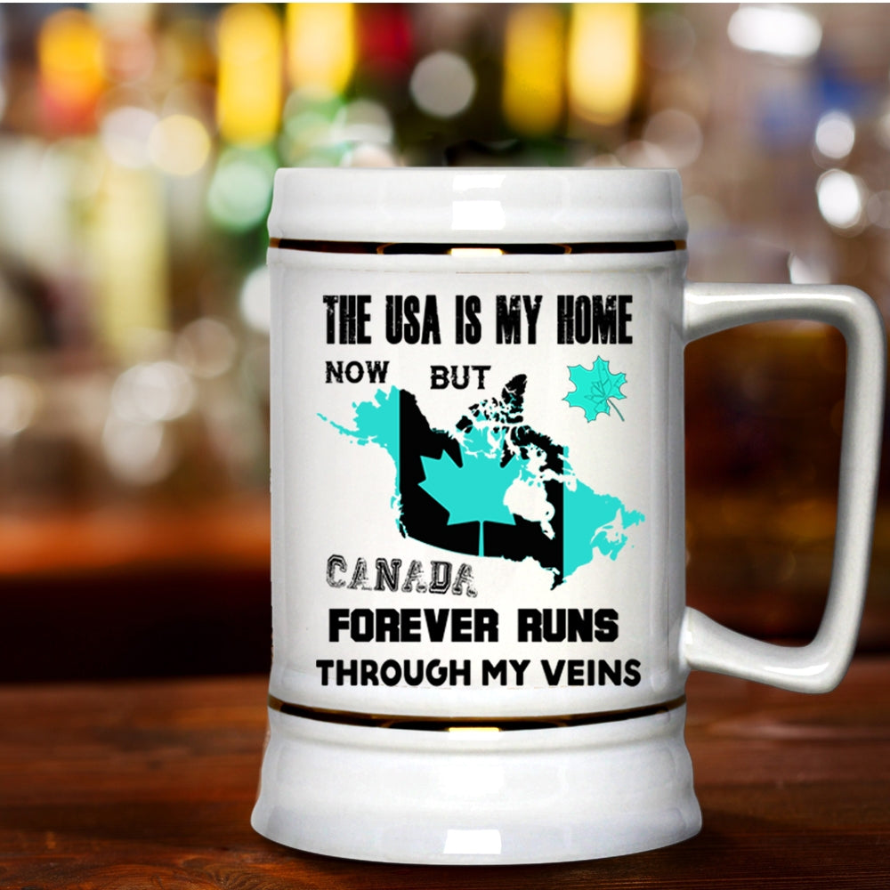 Canadan Flag Beer Stein 22oz, The USA Is My Home Beer Mug