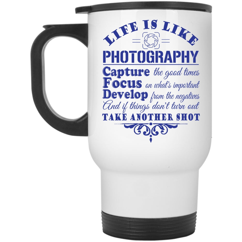 Capture The Good Times Travel Mug, Life Is Like Photography Mug