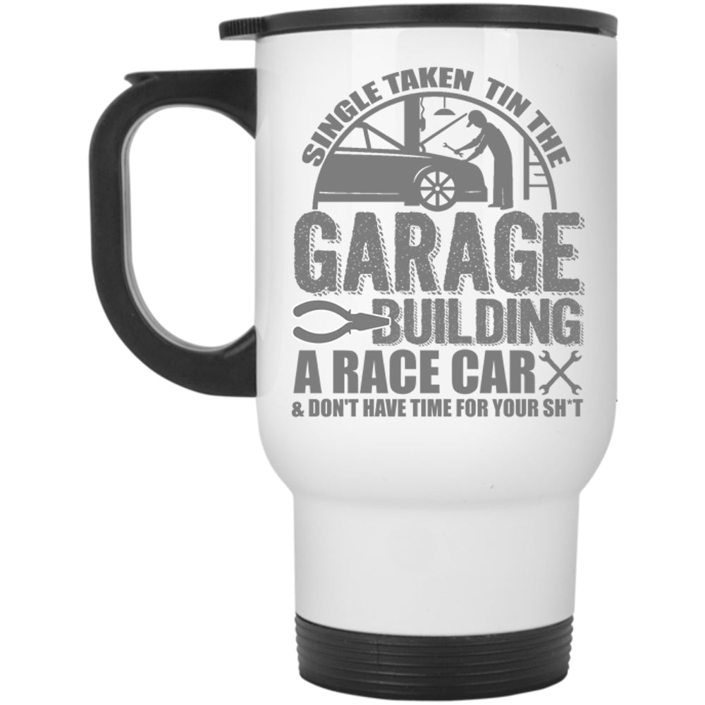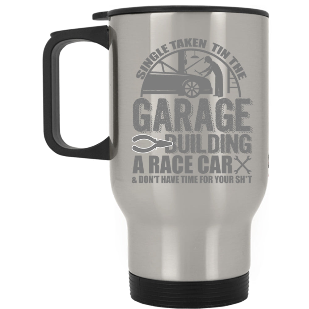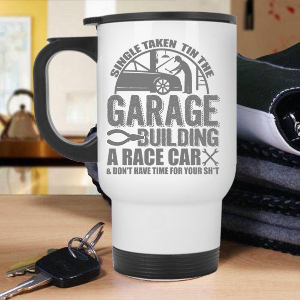 Car Mechanics Travel Mug, Single Taken Tin The Garage Building A Race Car Mug