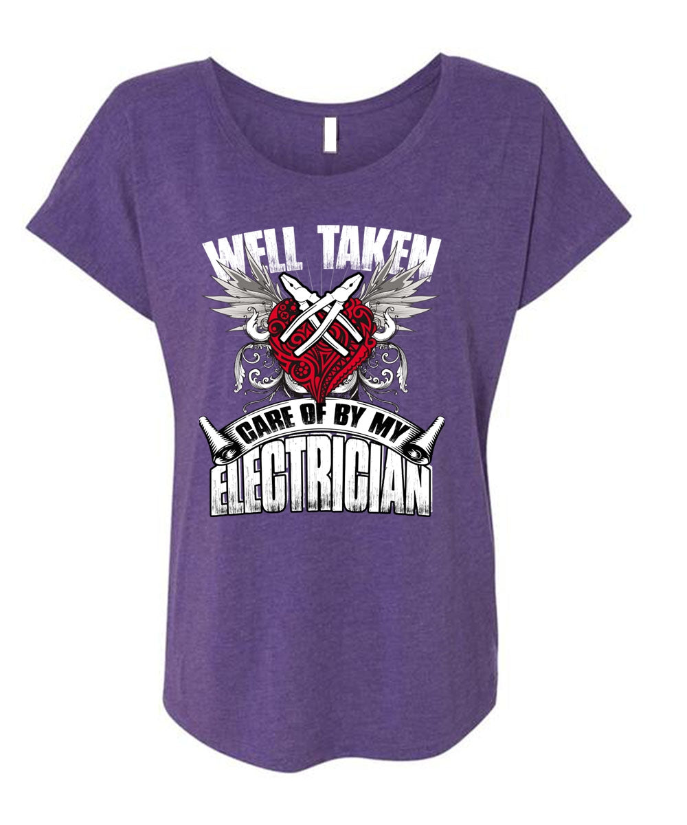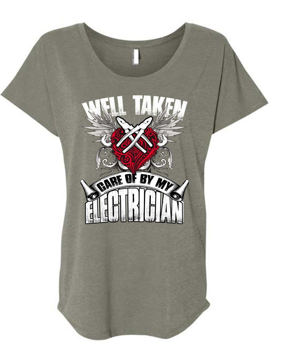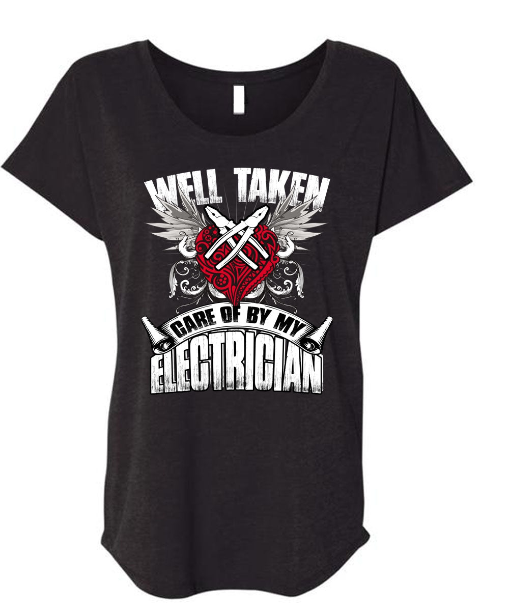 Care Of By My Electrician T Shirt, Being An Electrician T Shirt, Cool Shirt (Ladies' Triblend Dolman Sleeve)