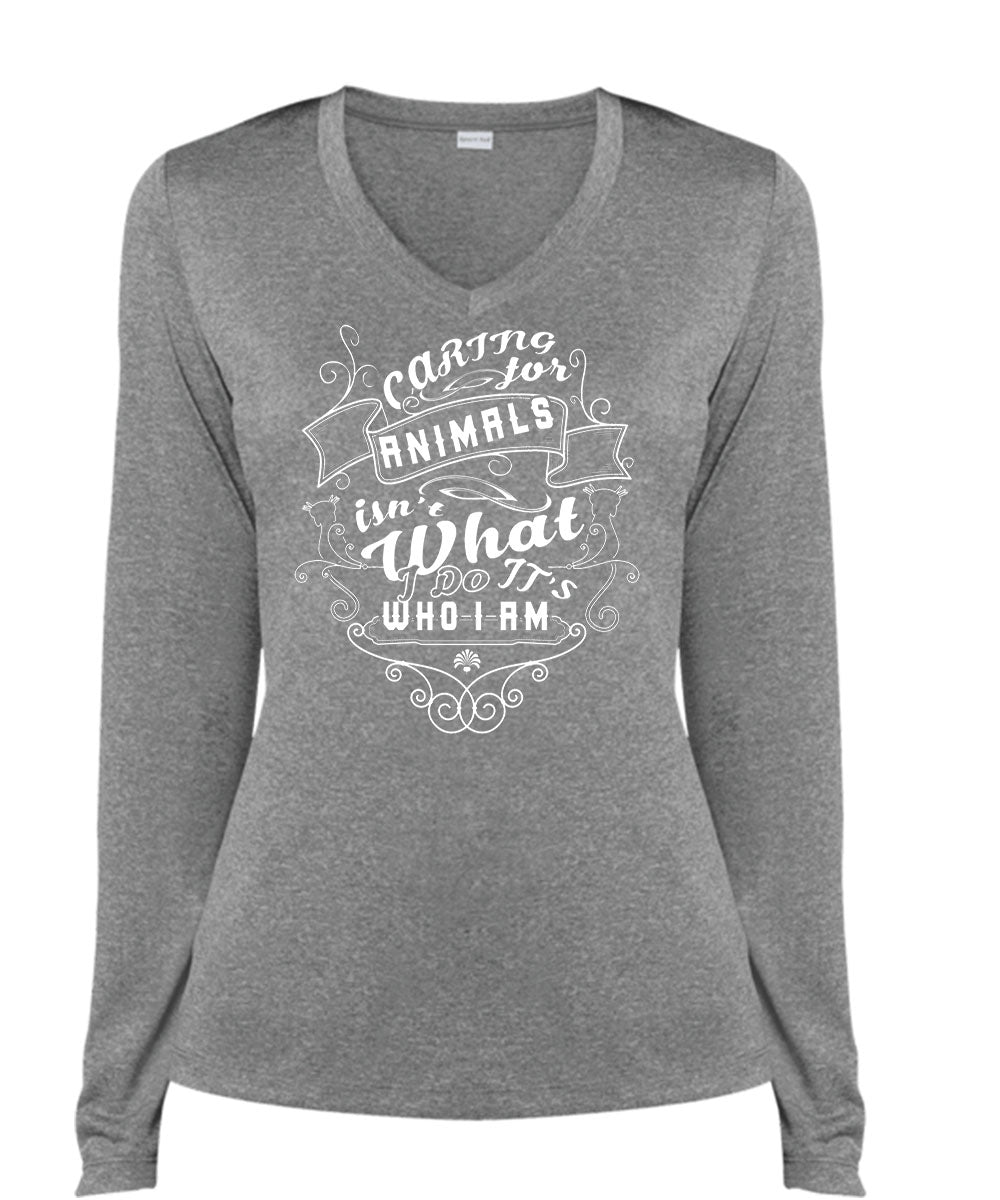 Caring For Animals Isn't What I Do It's Who I Am T Shirt, Life T Shirt (Ladies LS Heather V-Neck)