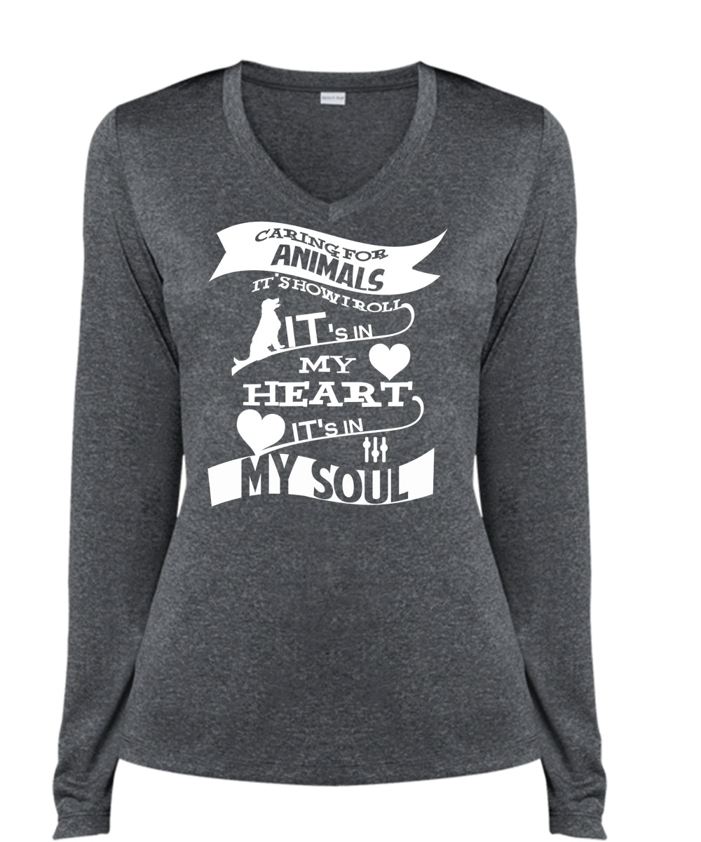 Caring For Animals T Shirt, It's In My Heart T Shirt, It's In My Soul T Shirt (Ladies LS Heather V-Neck)