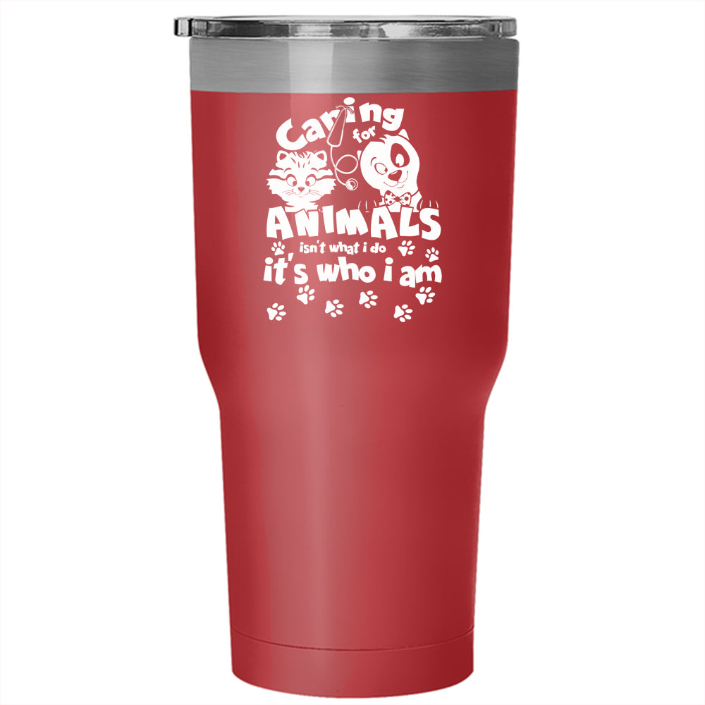 Caring For Animals Tumbler 30 oz Stainless Steel, Cute Gift For Vet Tech Travel Mug