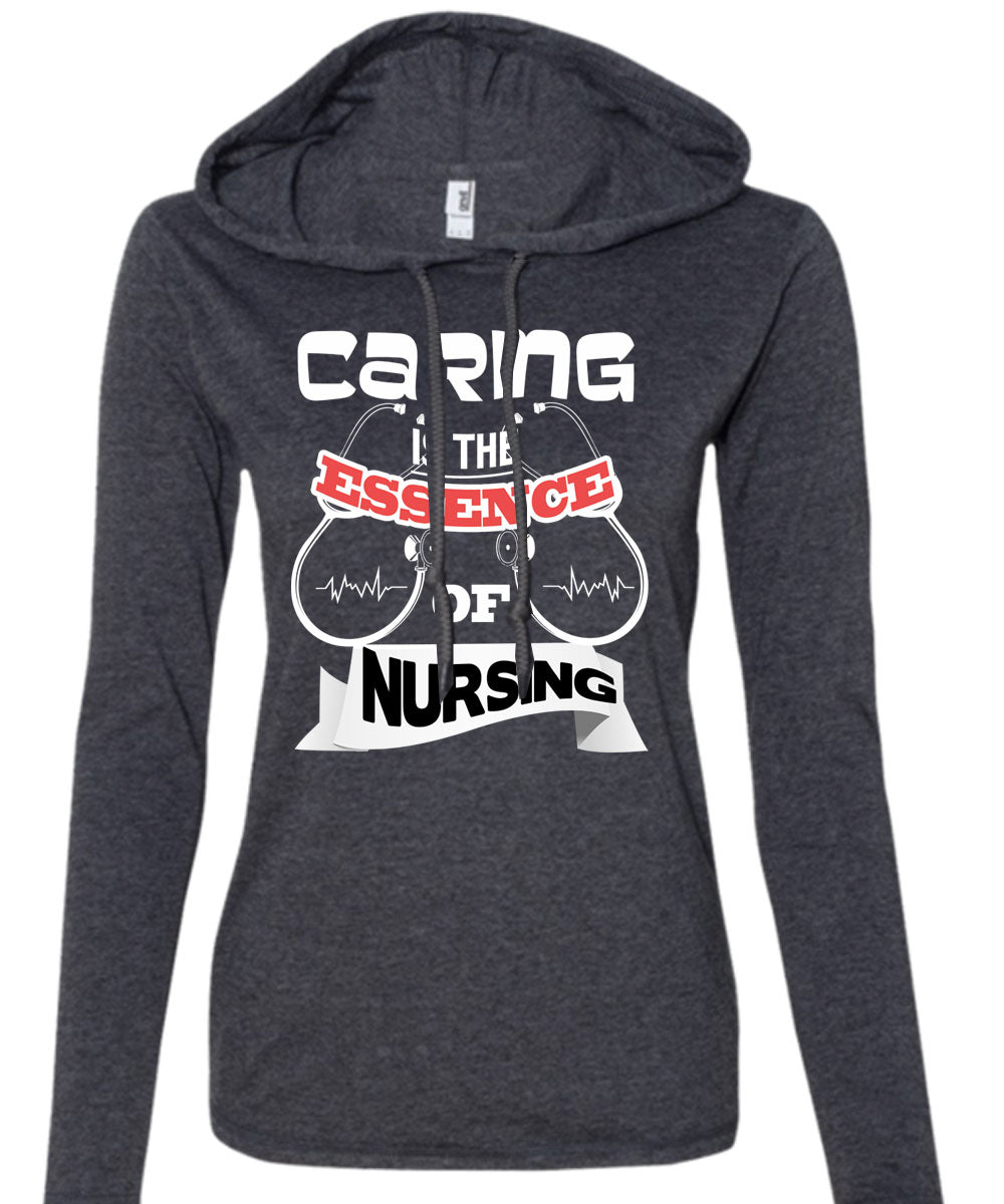 Caring Is The Essence Of Nursing T Shirt, I Love Nurse T Shirt (Anvil Ladies Ringspun Hooded)