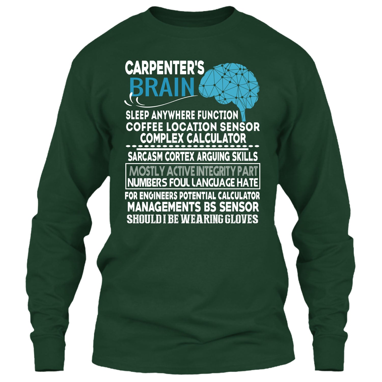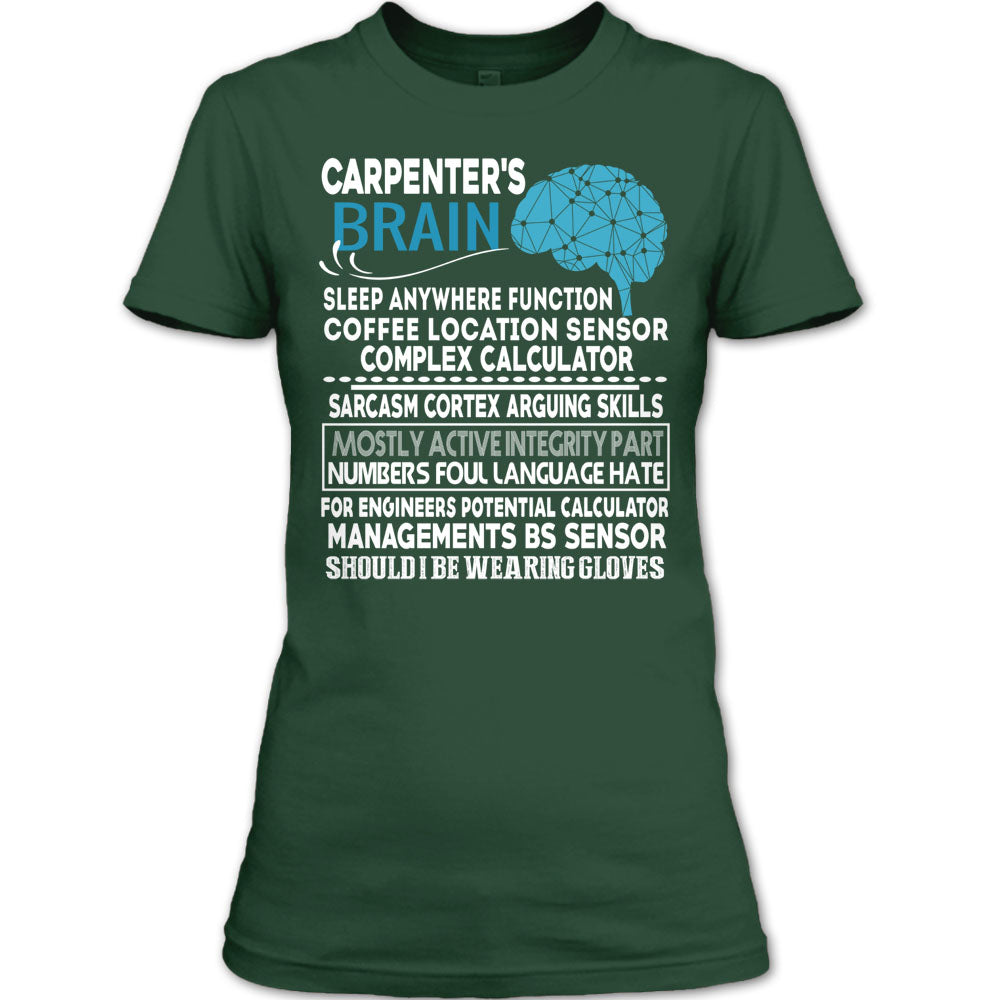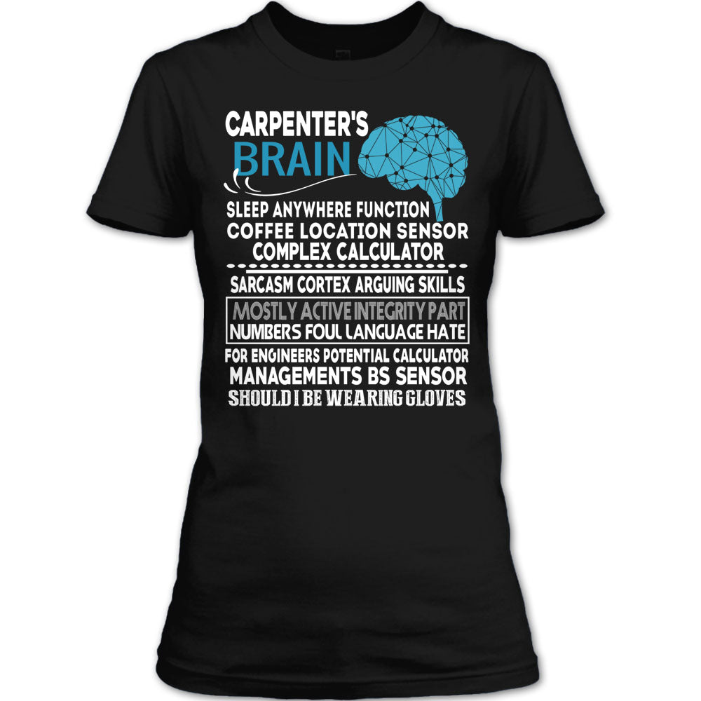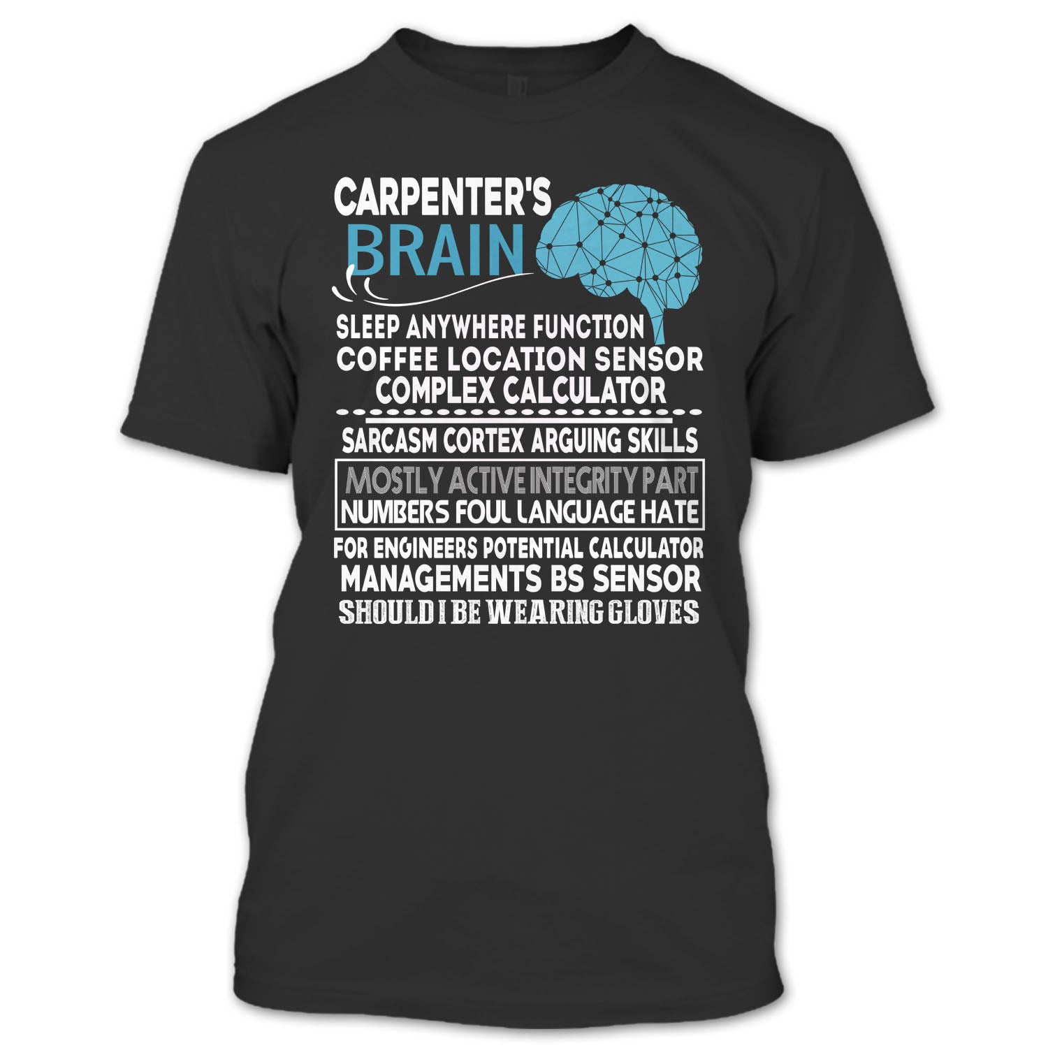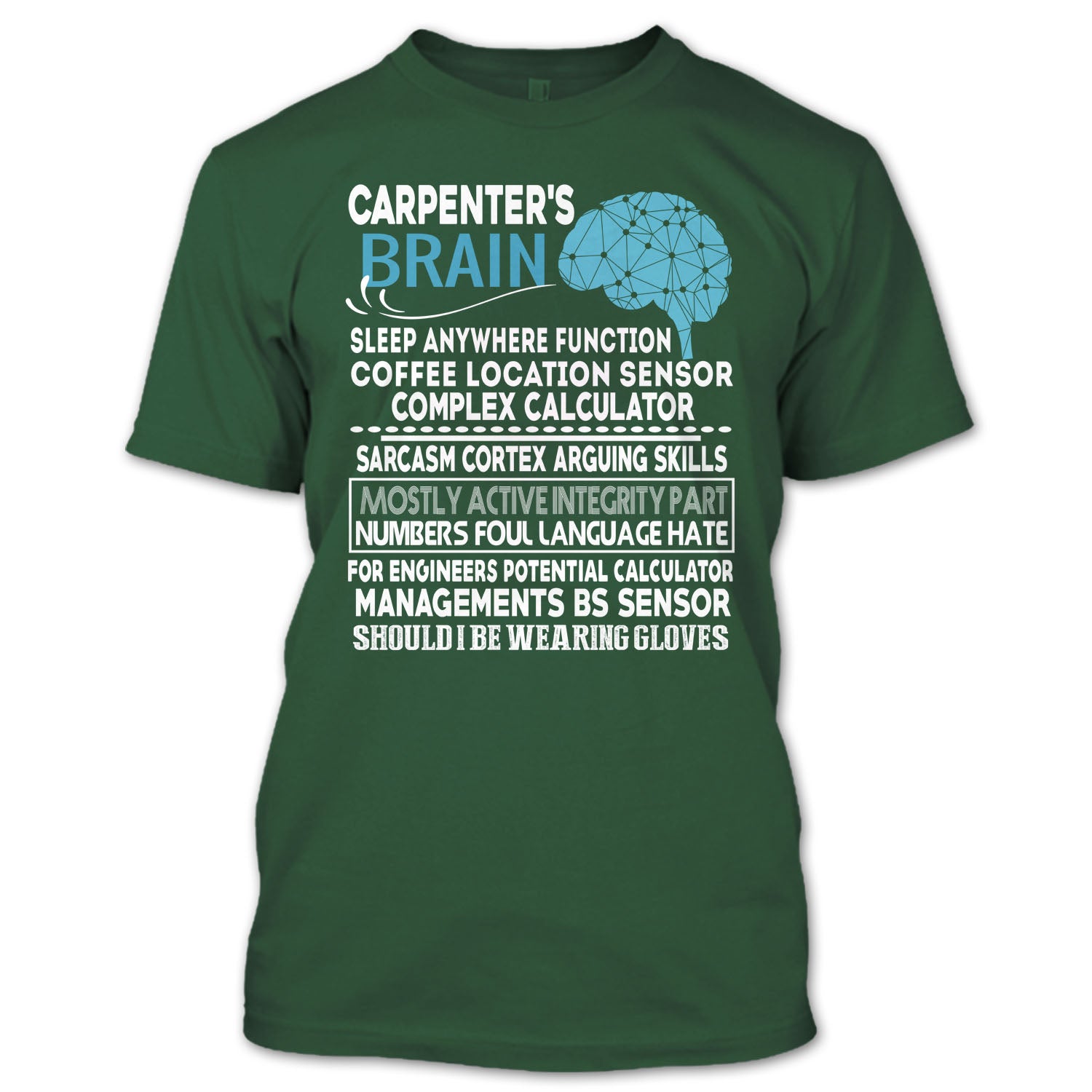 Carpenter's Brain T Shirt, Coolest Carpenter T Shirt