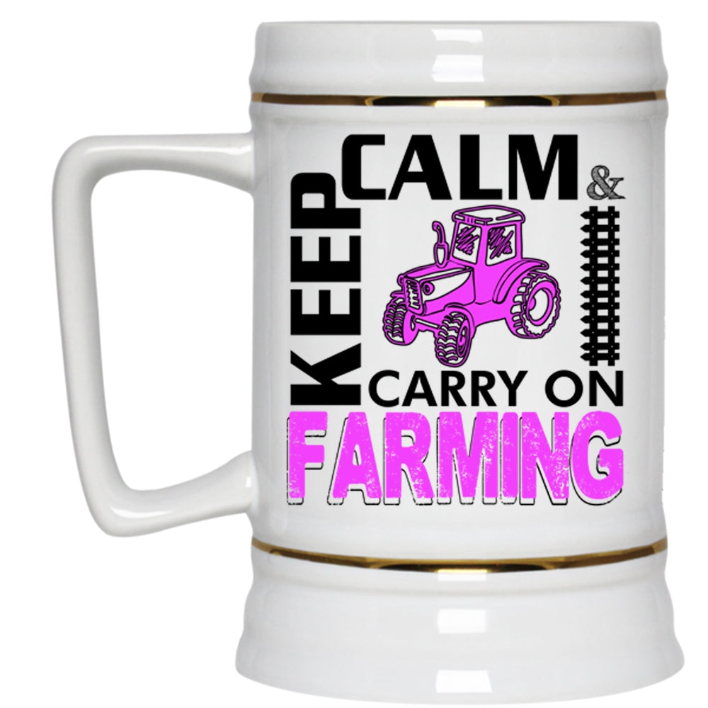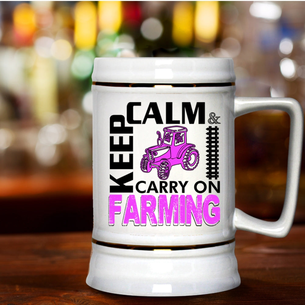 Carry On Farming Beer Stein 22oz, Keep Calm Beer Mug
